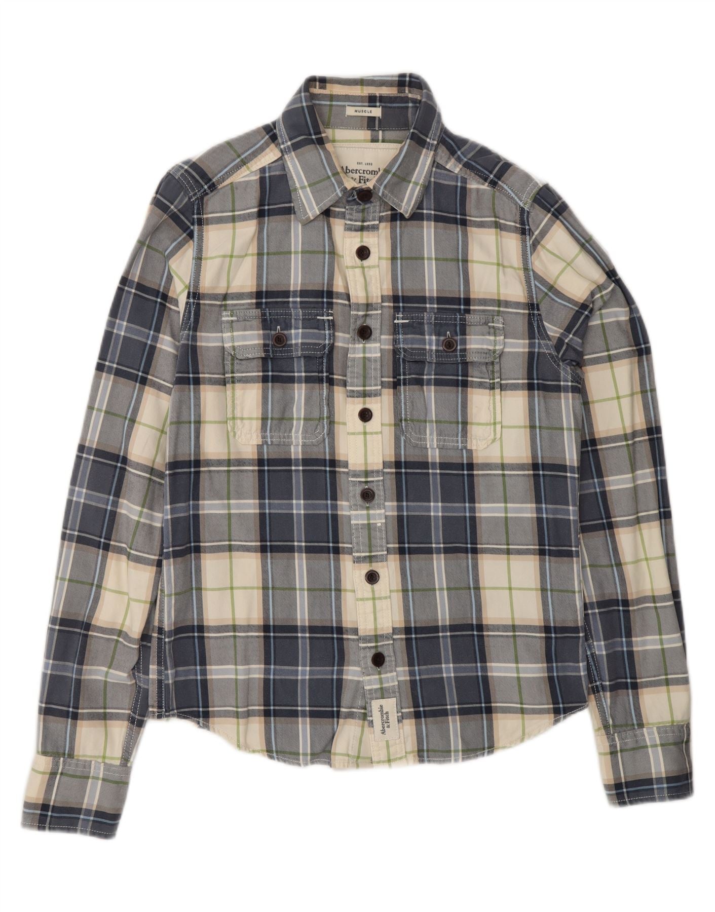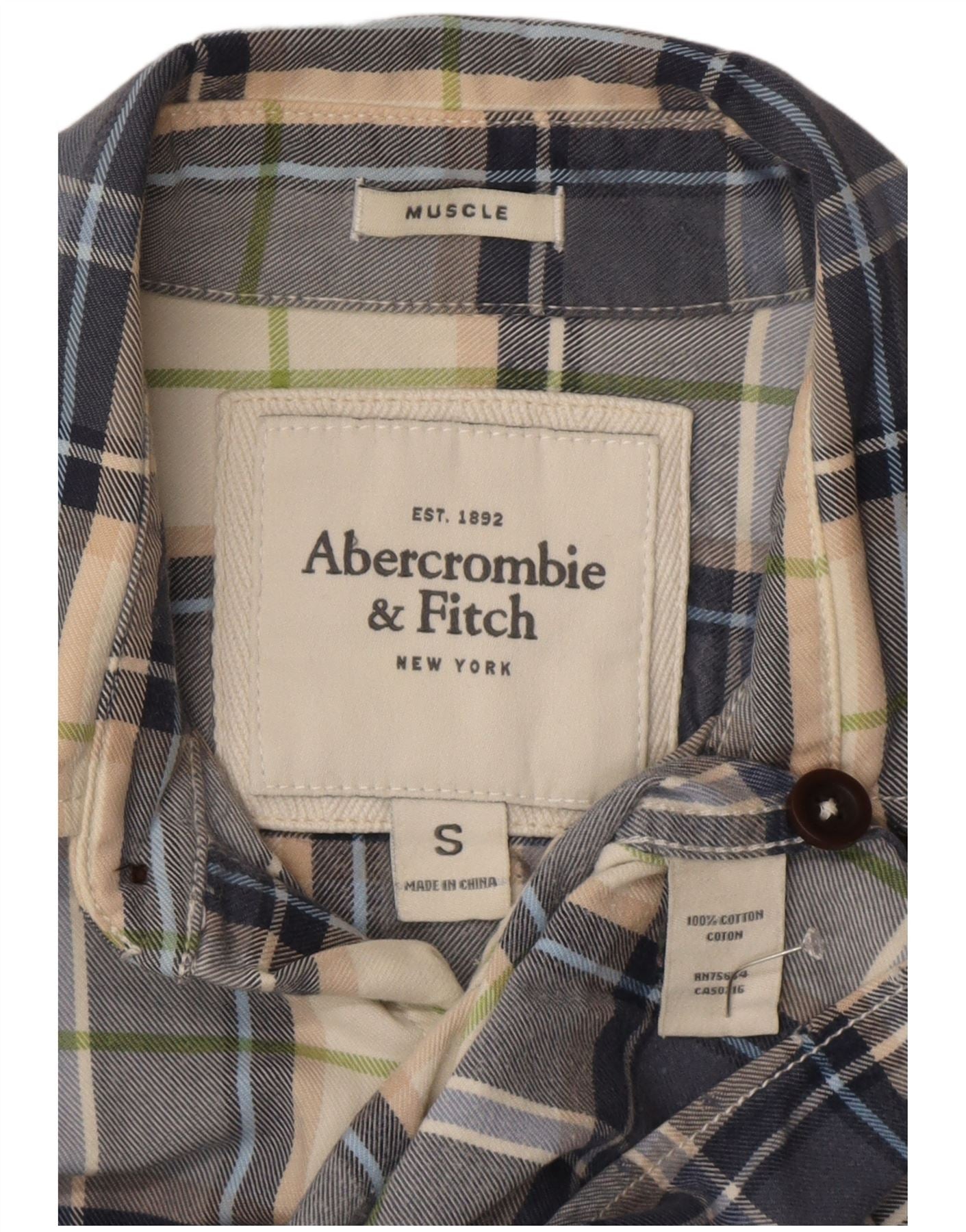 ABERCROMBIE & FITCH Muscle Flannel-skjorte til mænd, lille blå ternet bomuld