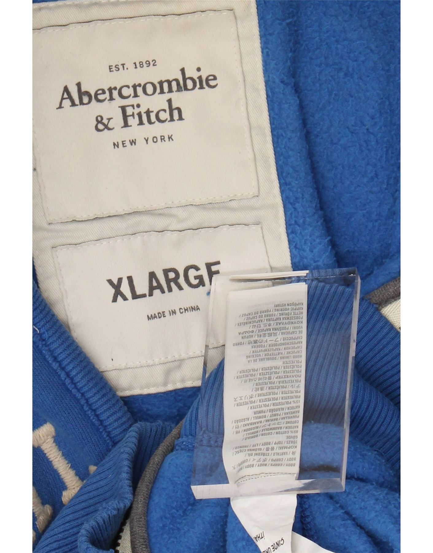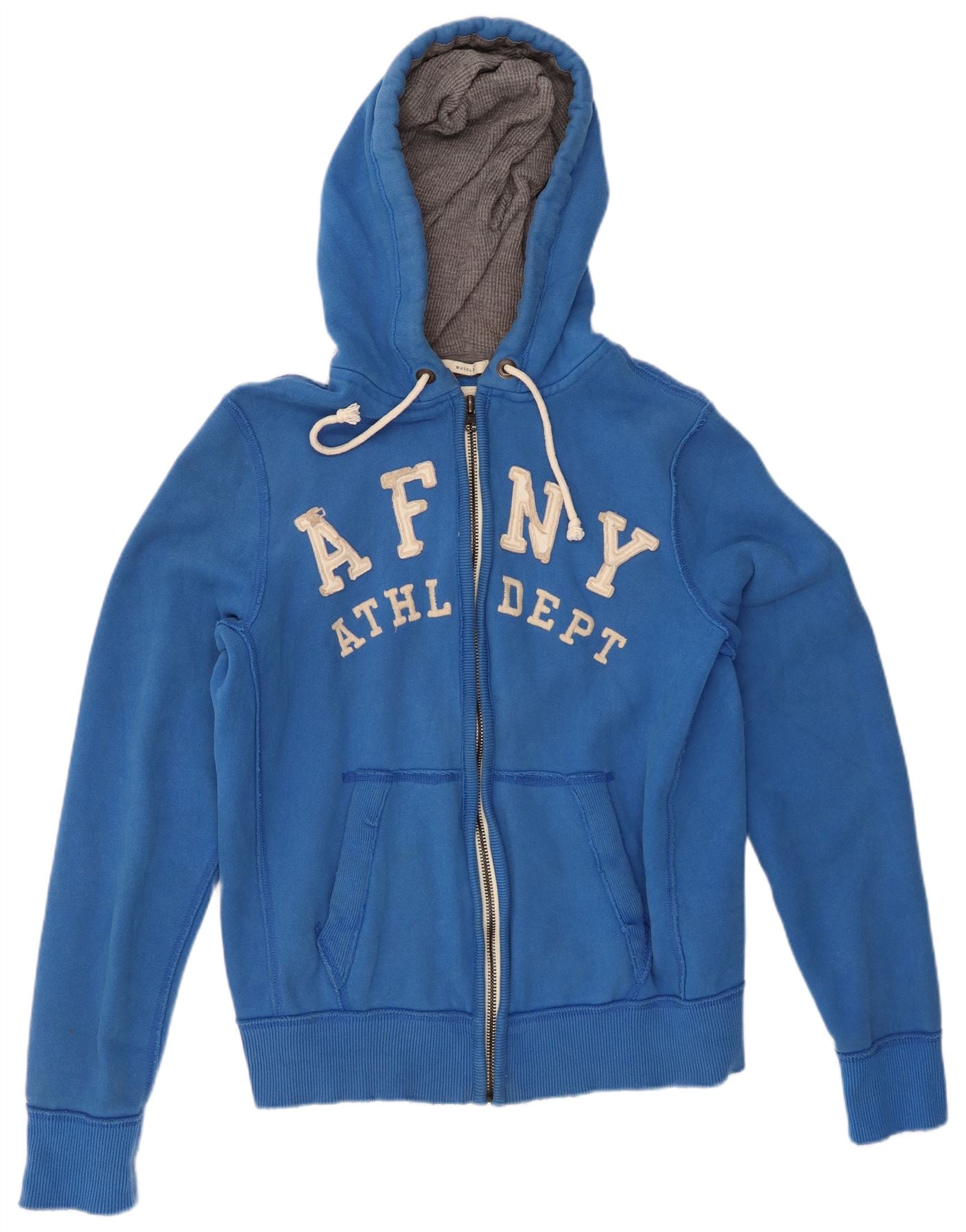 ABERCROMBIE & FITCH Herre Muscle Graphic Zip Hættetrøje Sweater XL Blå Bomuld