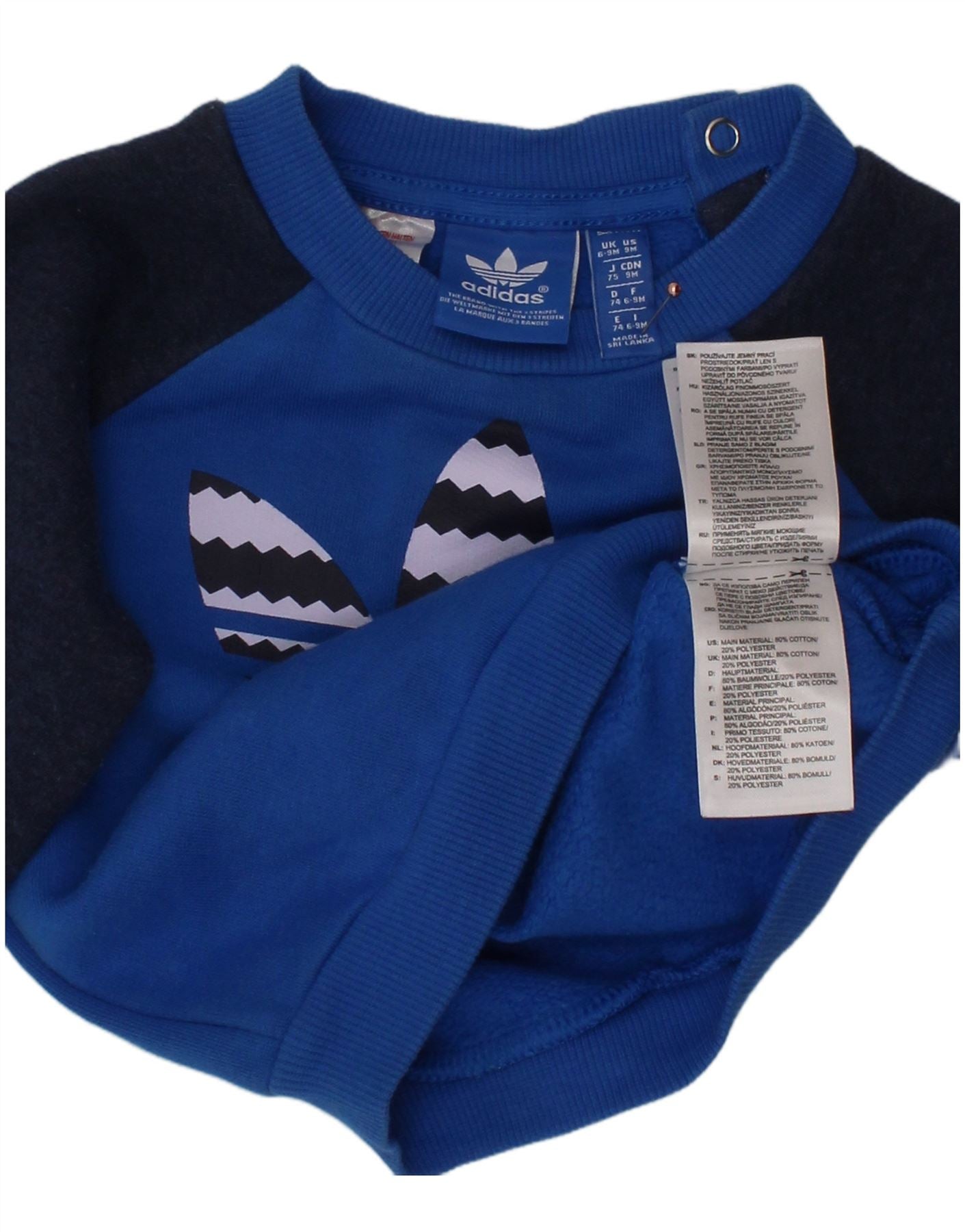 ADIDAS Baby Boys Grafisk Sweatshirt Jumper 6-9 måneder Blå Colourblock