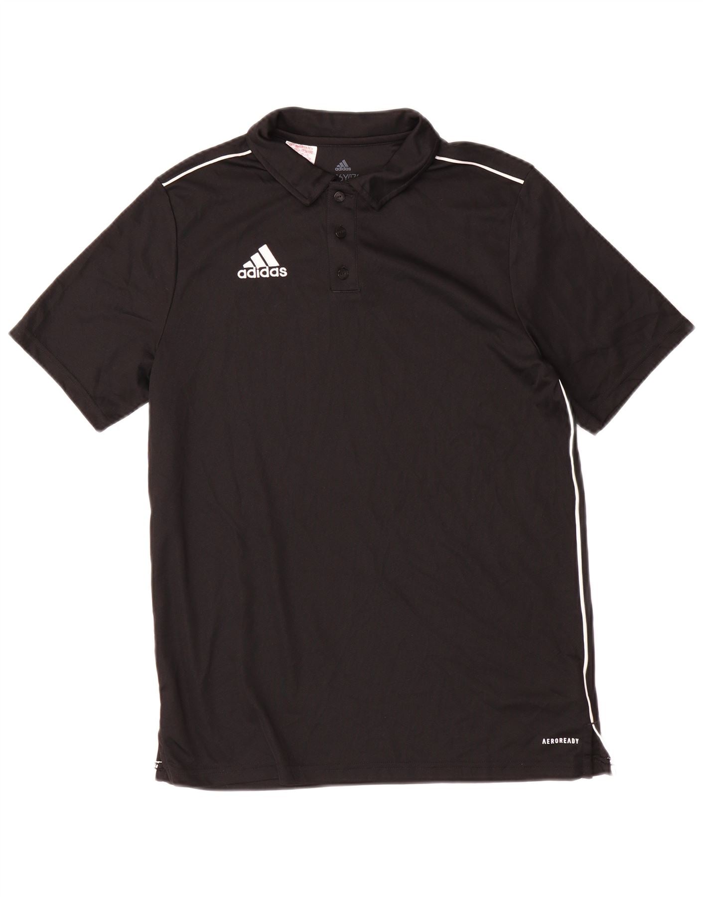 ADIDAS Boys Aeroready Polo Shirt 15-16 Years Black Polyester