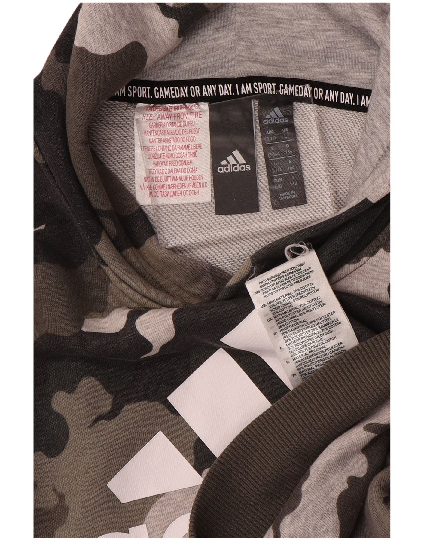 ADIDAS Grafisk hættetrøje til drenge 13-14 år Brun Camouflage Bomuld