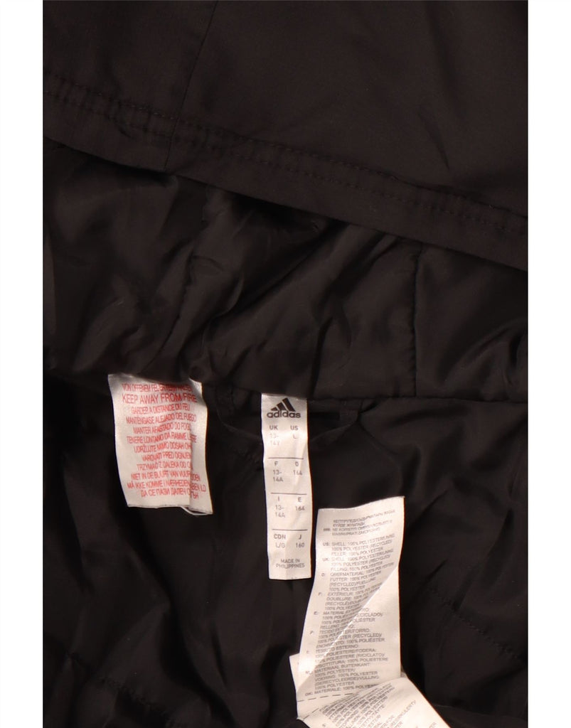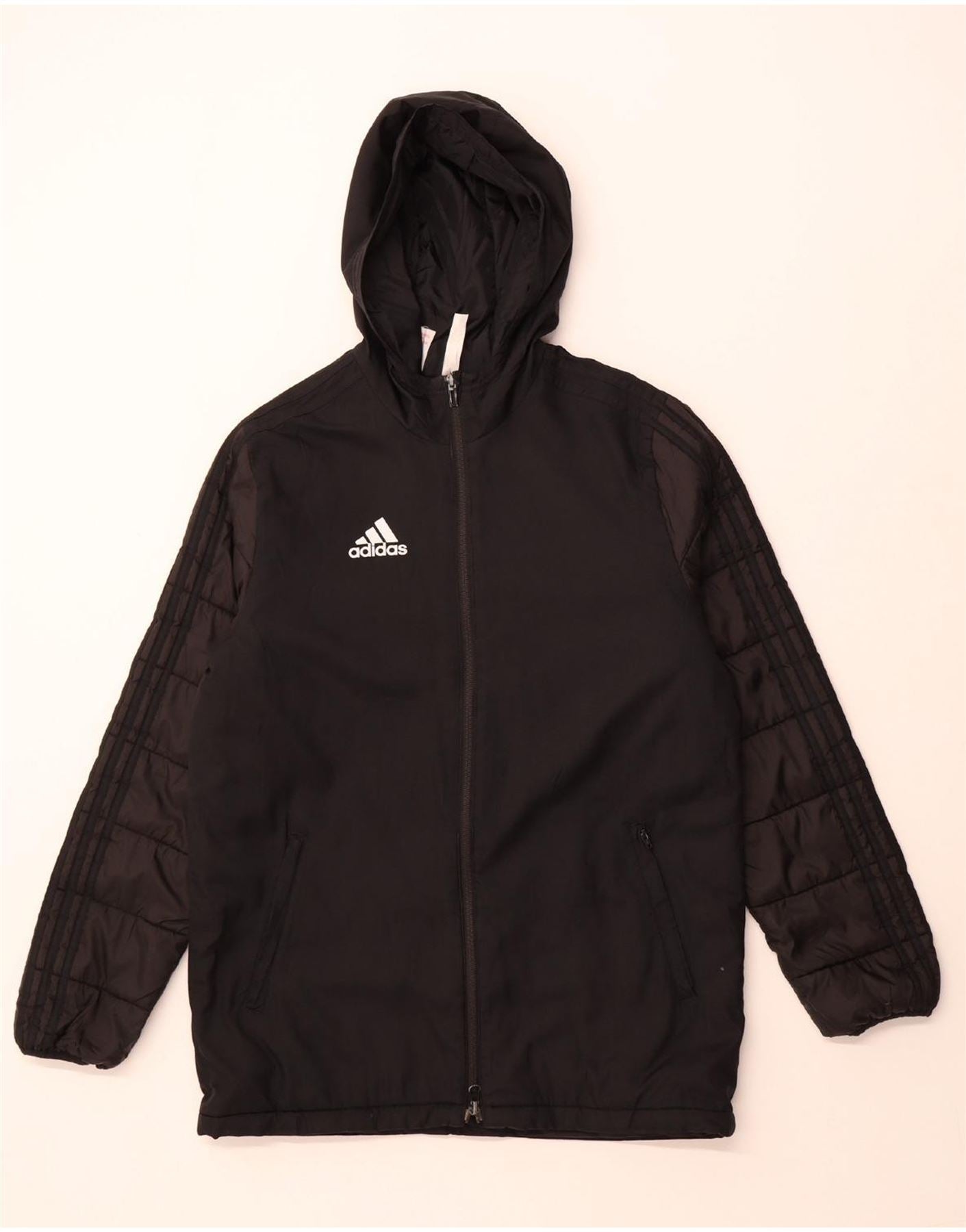 ADIDAS Boys Hooded Windbreaker Jacket 13-14 Years Black Polyester
