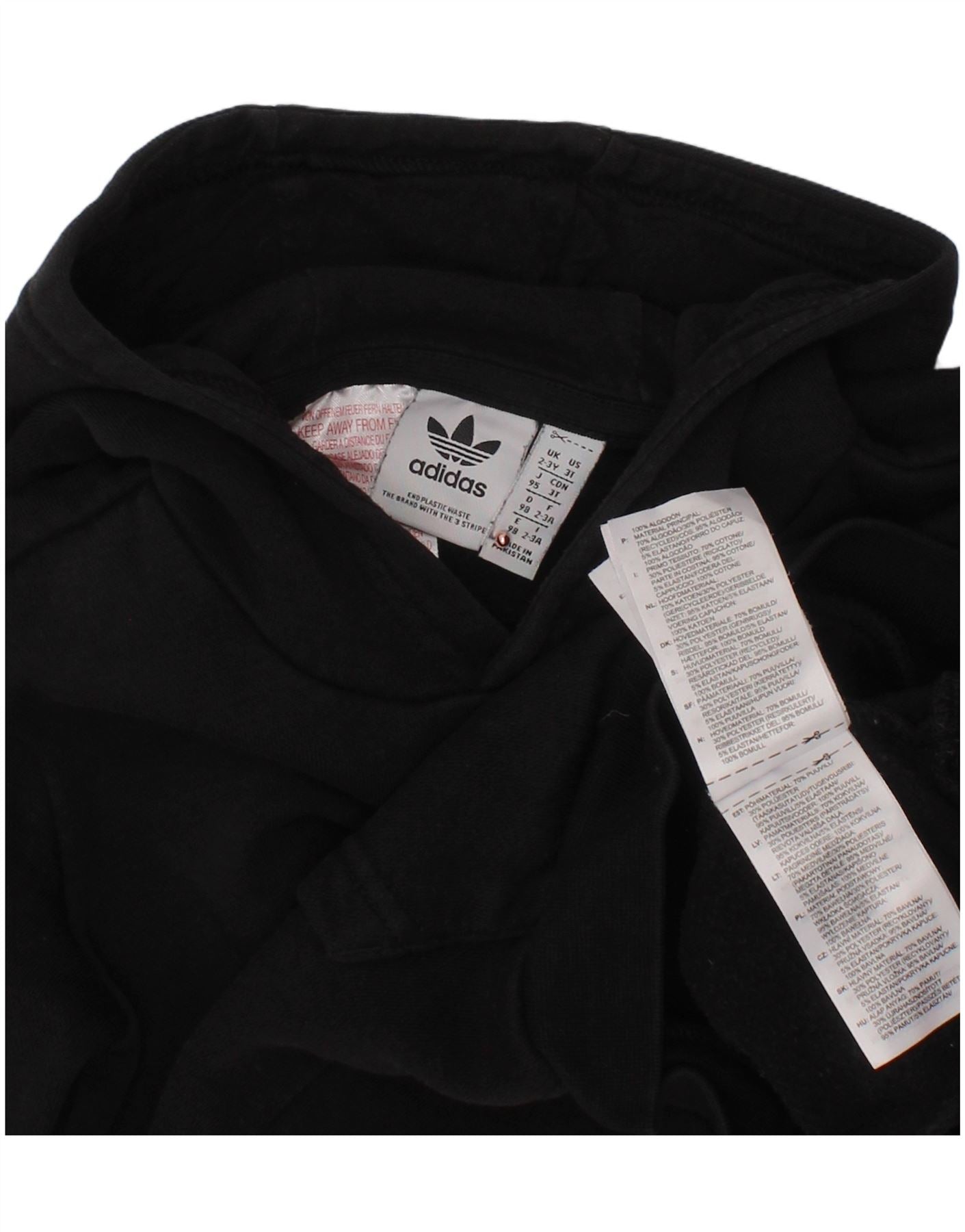 ADIDAS Boys Hoodie Jumper 2-3 Years Black Cotton