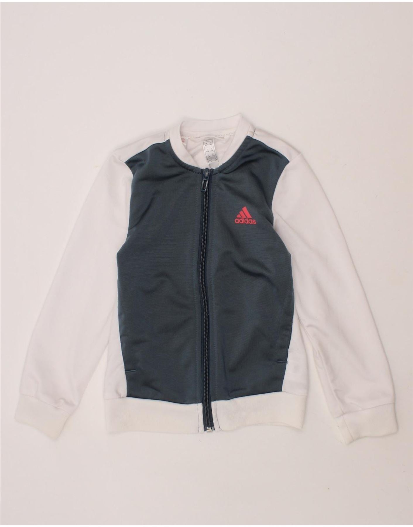 ADIDAS Boys Tracksuit Top Jacket 5-6 Years White Colourblock Polyester