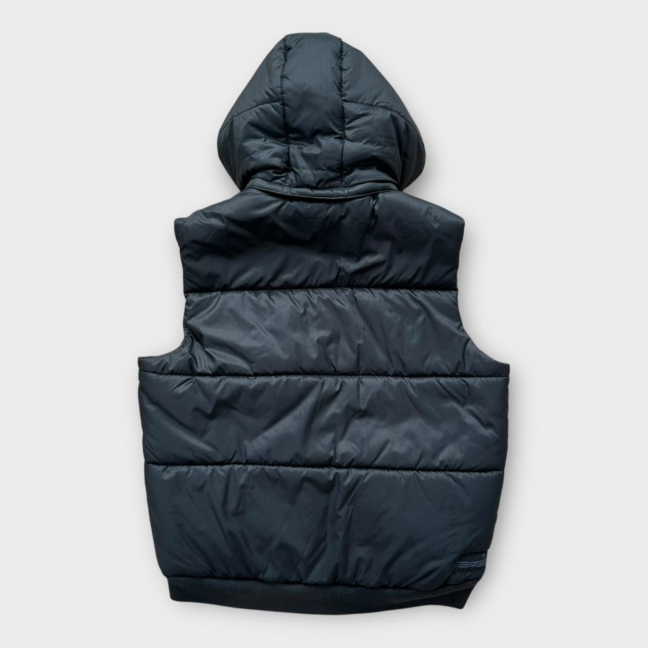 Vintage tidlig 2000'er Y2K lynlås Adidas gilet pufferjakke i sort med aftagelig hætte og broderet logo på brystet