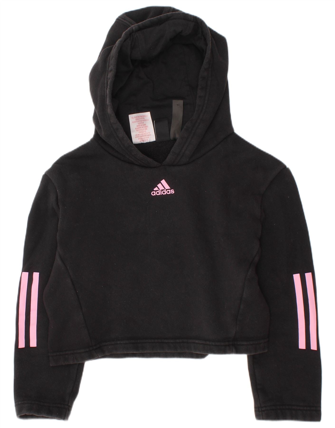ADIDAS Pige Crop Hoodie Jumper 7-8 år Sort Bomuld