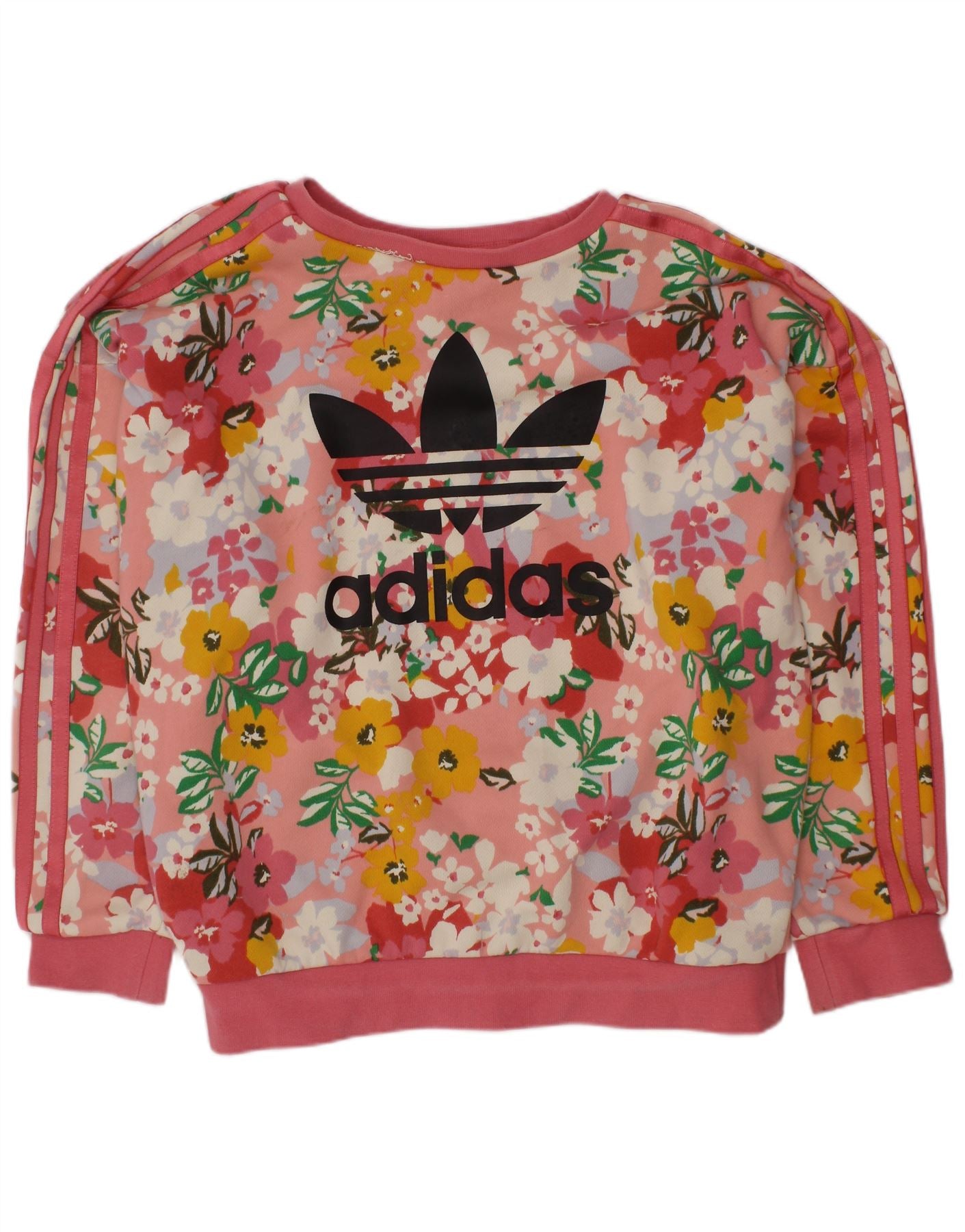 ADIDAS Piger Grafisk Sweatshirt Jumper 9-10 år Pink Blomsterbomuld