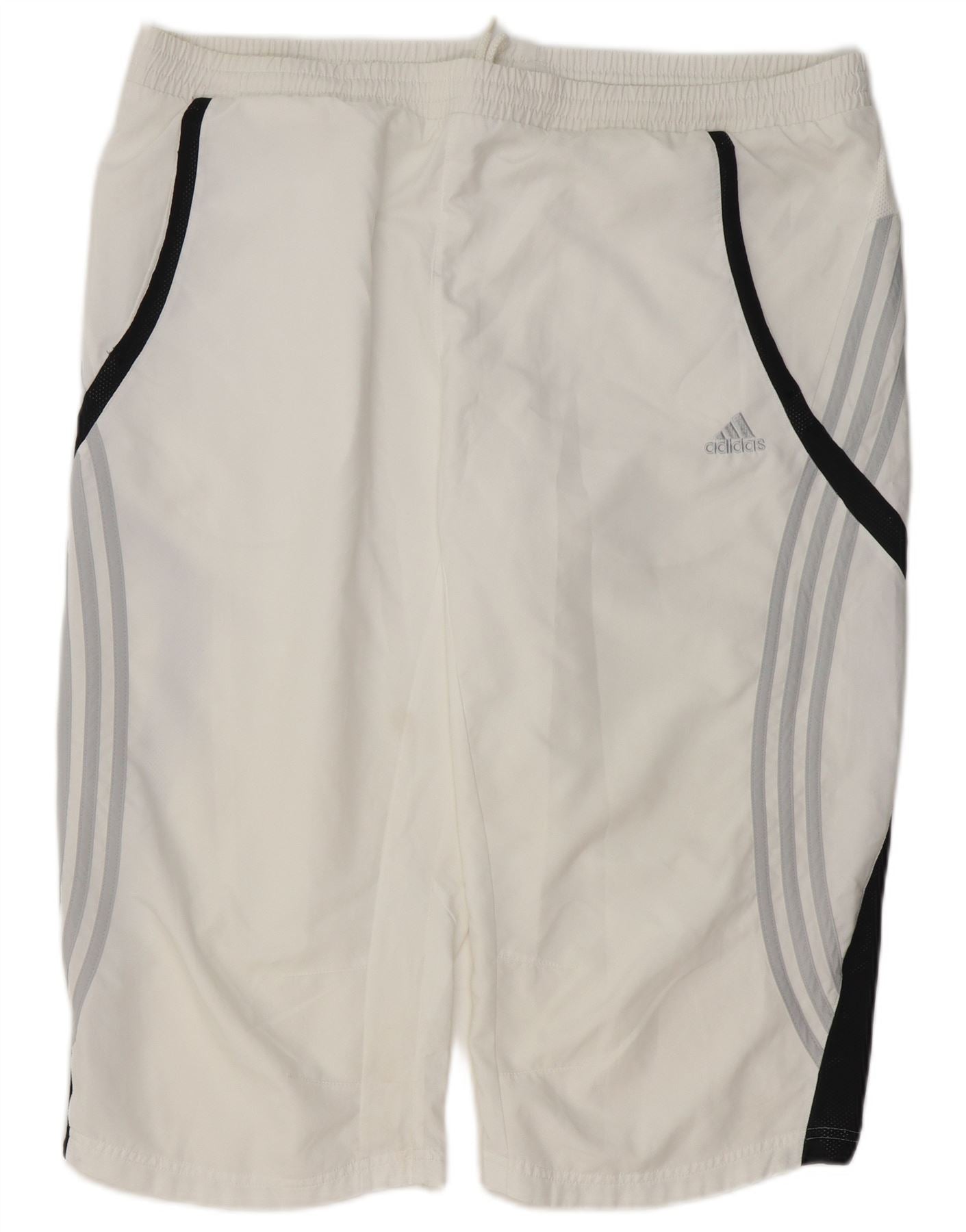 - AI beskrivelse: Disse Adidas træningsshorts til mænd er lavet af et åndbart hvidt blandet stof, der tilbyder komfort og ydeevne. De har en elastisk pull-on talje for en atletisk pasform. Designet inkluderer tre karakteristiske striber i grå og sorte sidepaneler for et dynamisk look. Lommer tilføjer funktionalitet. Denne Climacool-beklædning er ideel til sport og træning.