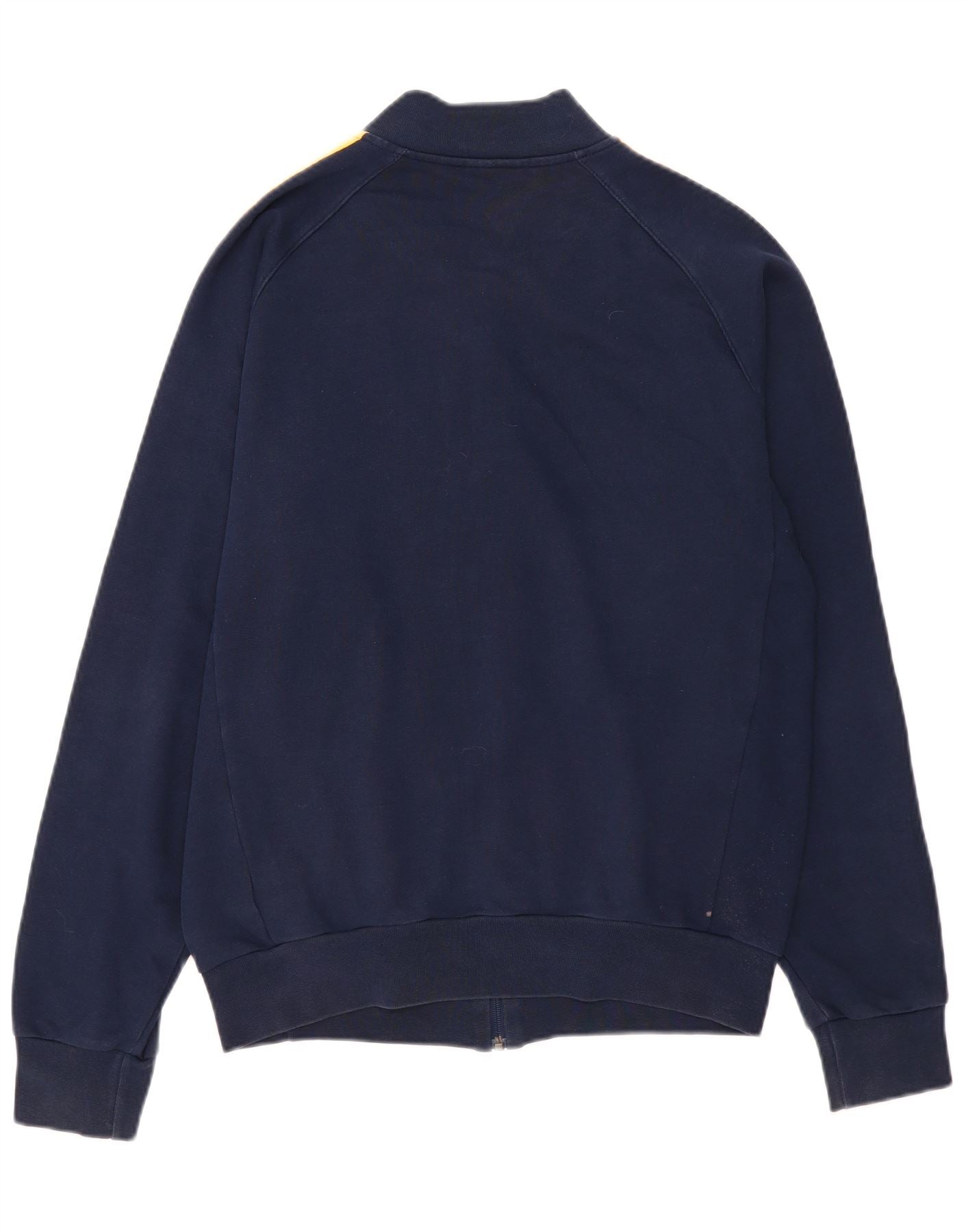 - AI beskrivelse: Denne Adidas træningsjakke til mænd er lavet af et behageligt marineblåt blandet stof med 70 procent bomuld. Den har en høj hals og en fuld lynlås lukning for alsidig brug. Lange ærmer viser ikoniske gule striber, hvilket tilføjer en klassisk sportsæstetik. Den regelmæssige pasform sikrer nem bevægelse. Ærmer og kant med ærmer giver en pæn finish. En Adidas-logografik på brystet fuldender designet.
