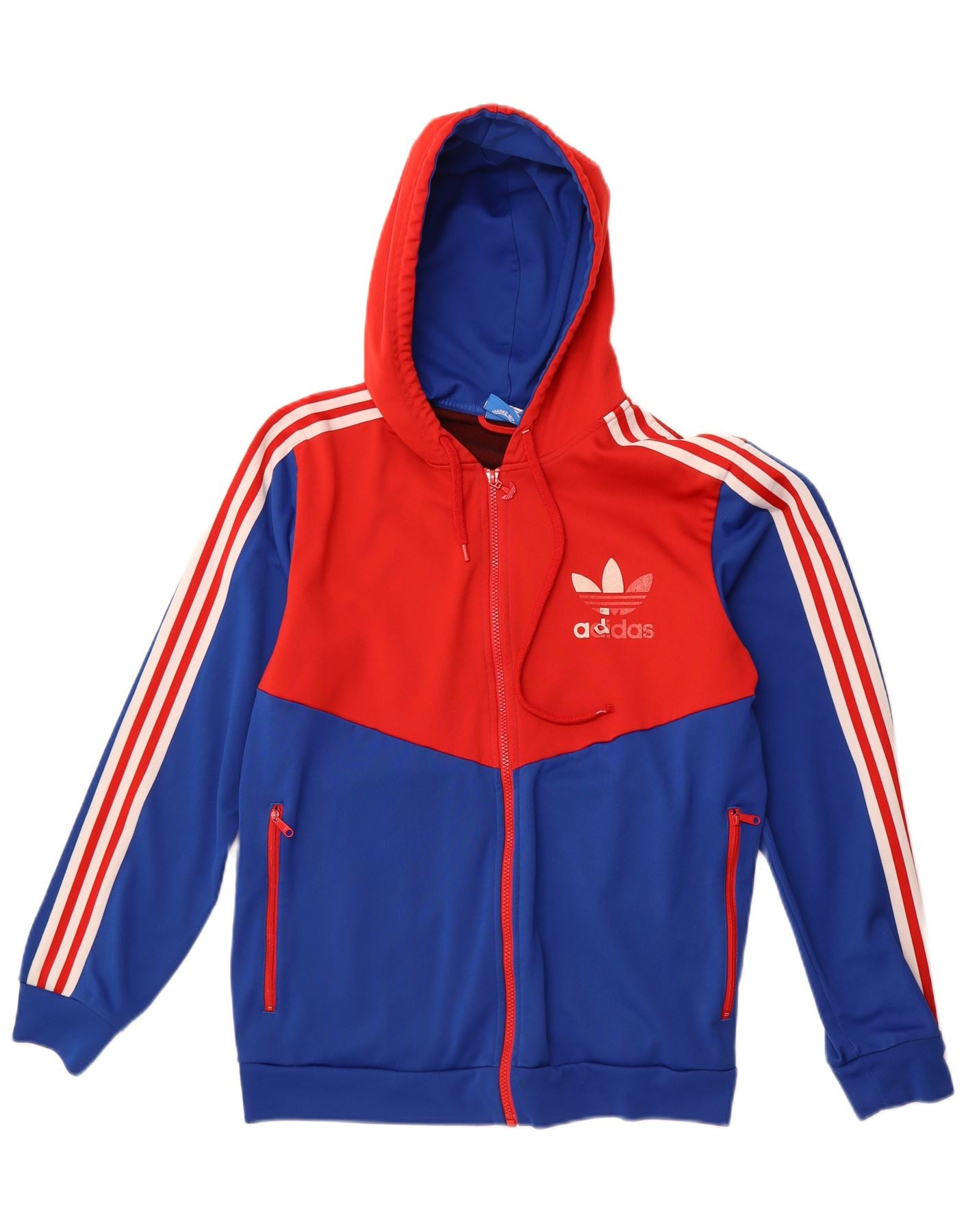 ADIDAS grafisk hættetrøje med lynlås til mænd Large Blue Colourblock Polyester
