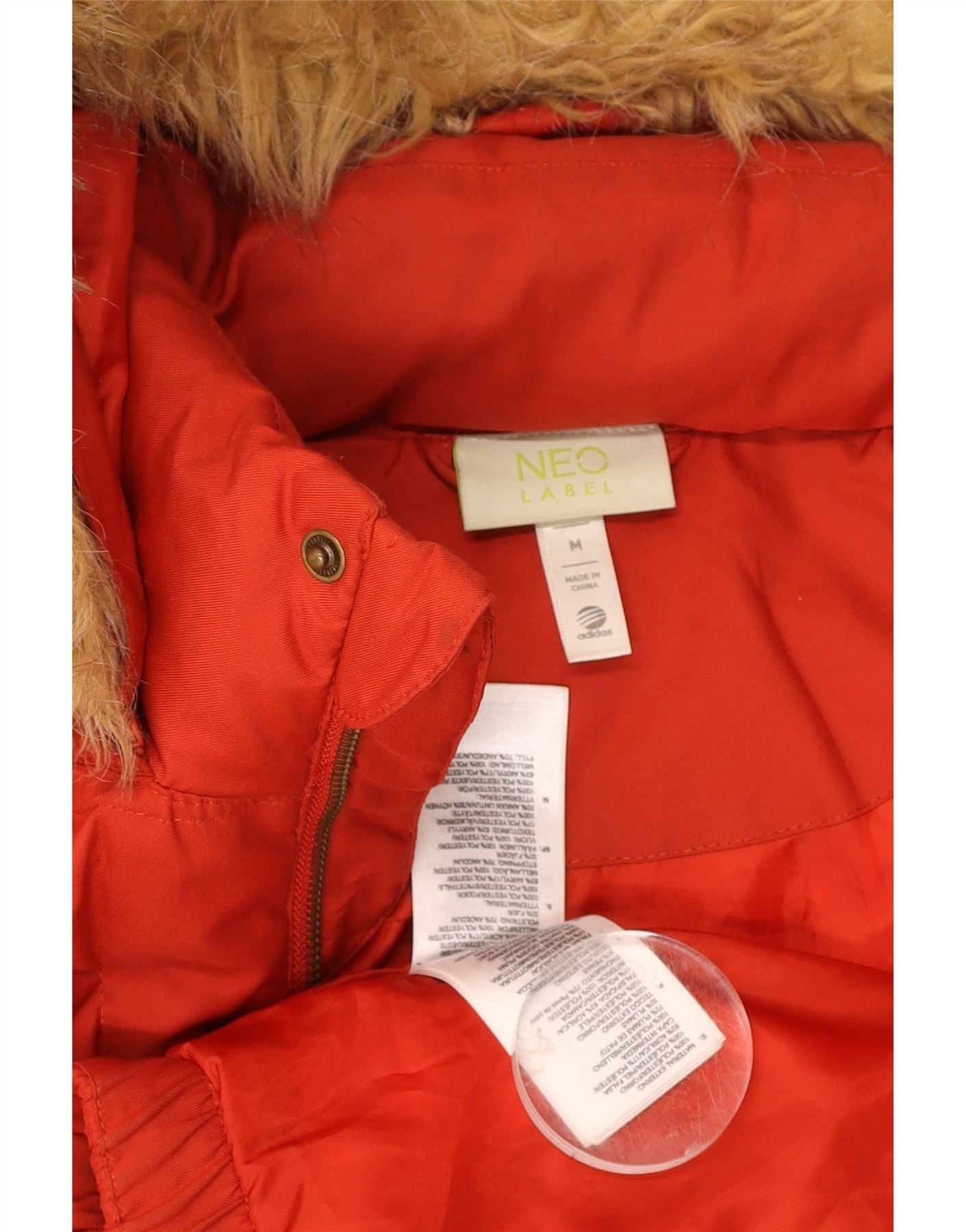 ADIDAS Mens Neo Label Hooded Padded Jacket UK 38 Medium Orange Polyester