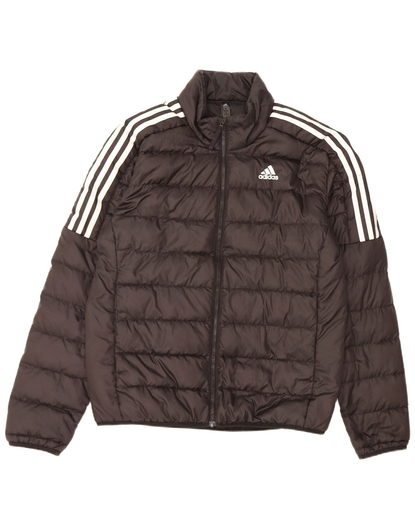 - AI Description: This Adidas mens padded jacket is crafted from durable polyester with a luxurious duck down and feather filling. It features a collared neckline and long sleeves for full coverage. The full zip closure ensures easy wear. A regular fit offers comfortable layering. The padded design provides excellent insulation. A subtle logo accent completes the sporty look.