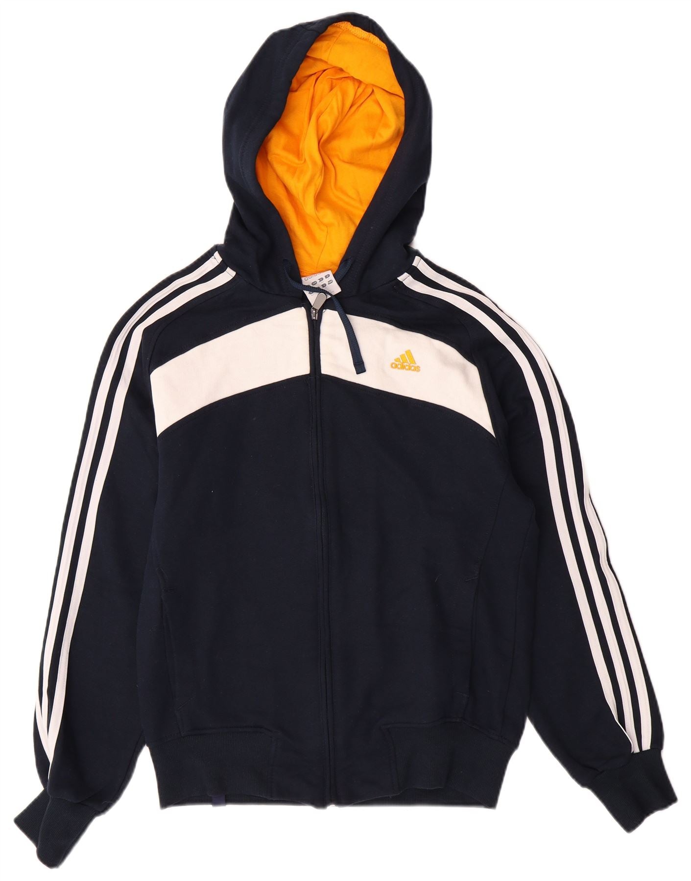 ADIDAS Hættetrøje med lynlås til mænd UK 34/36 Small Navy Blue Colourblock Bomuld