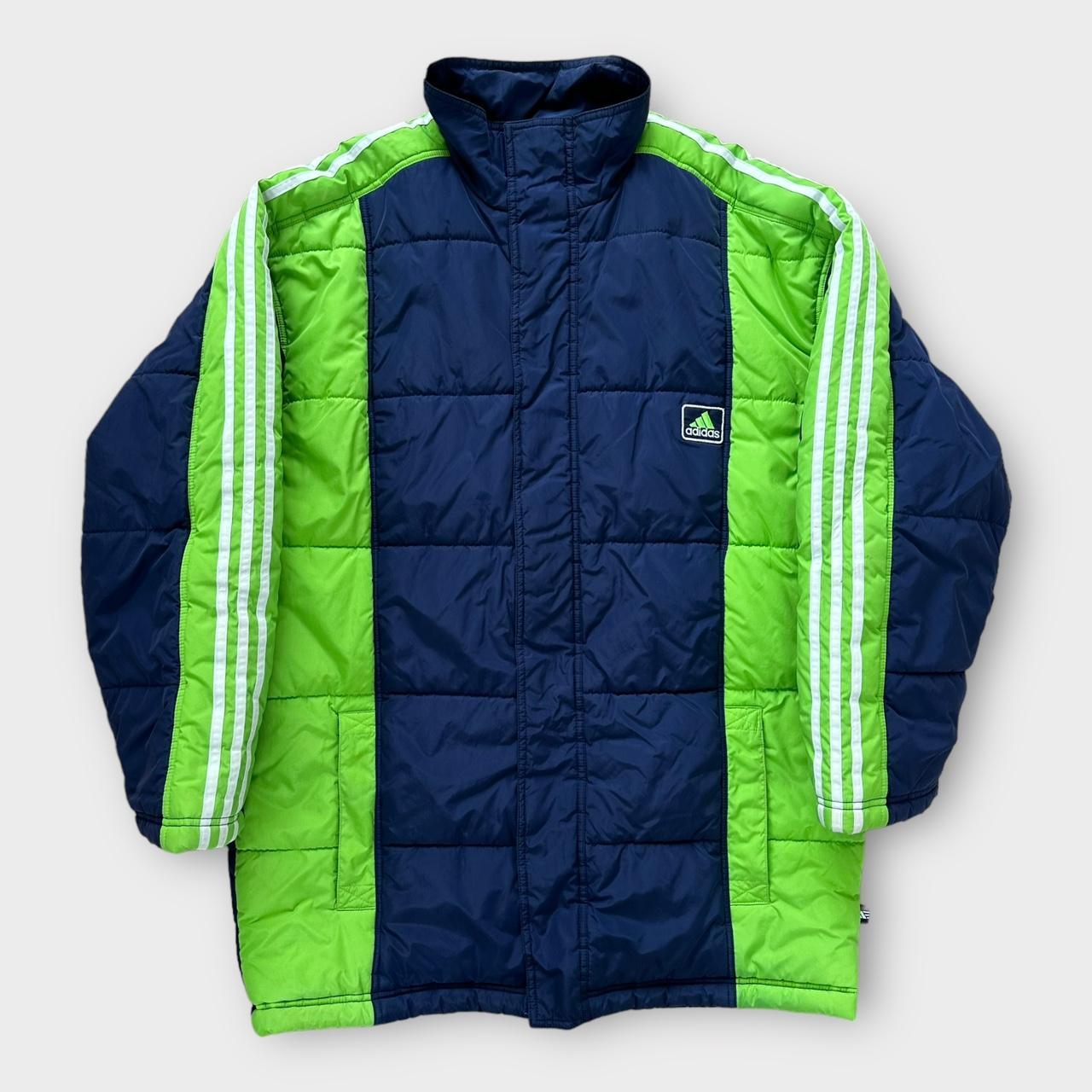 Adidas tofarvet puffer i begyndelsen af 2000'erne med broderet logo på brystet
