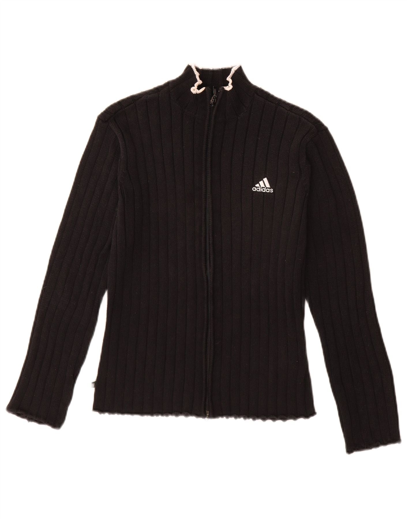 ADIDAS Dame Cardigan Sweater UK 12 Medium Sort Bomuld
