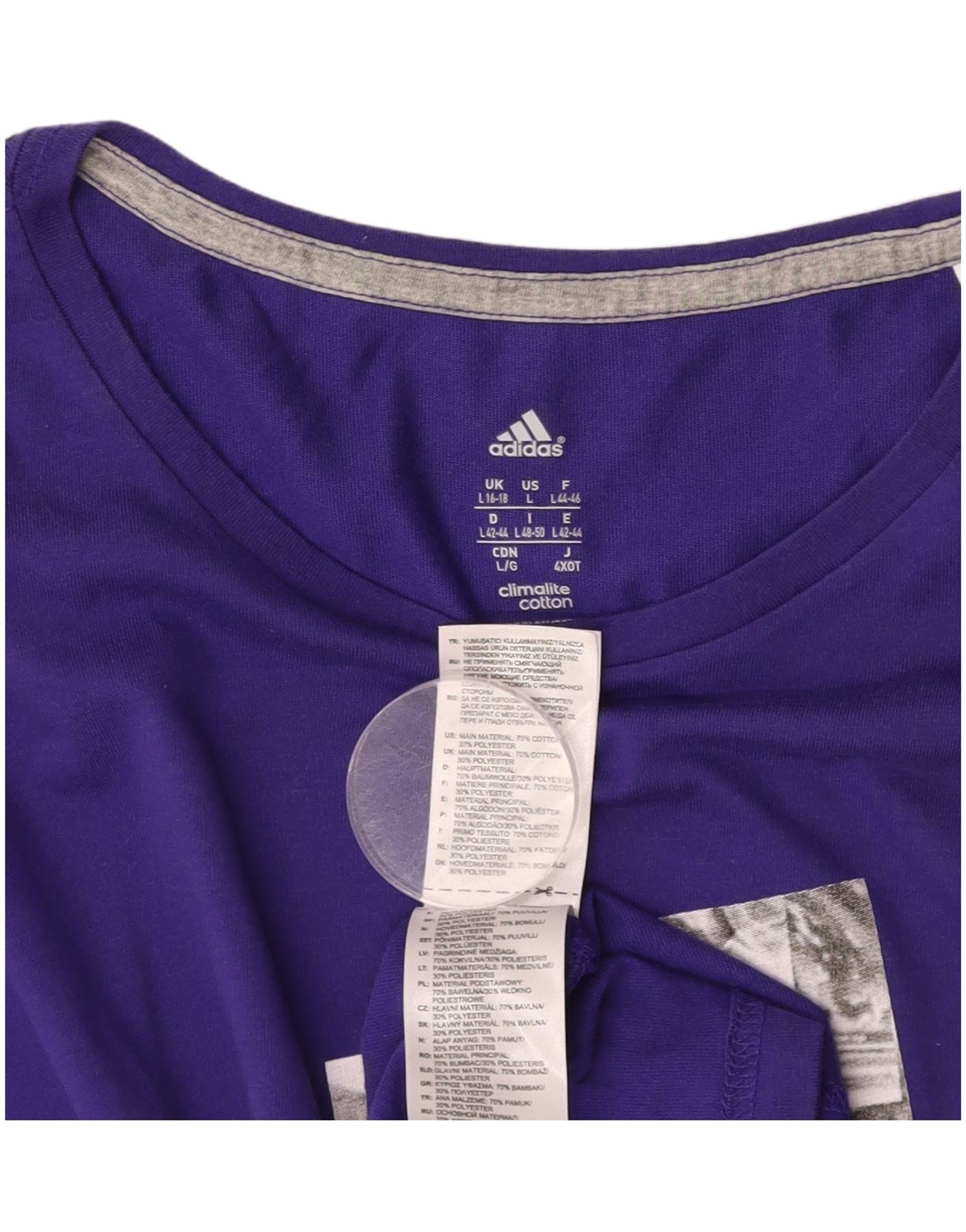 ADIDAS Dame Climalite grafisk T-shirt top UK 16/18 Stor lilla bomuld