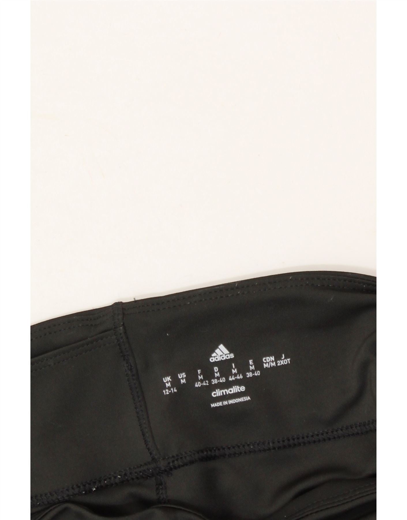 ADIDAS Womens Climalite Leggings UK 12/14 Medium Black Striped Polyester