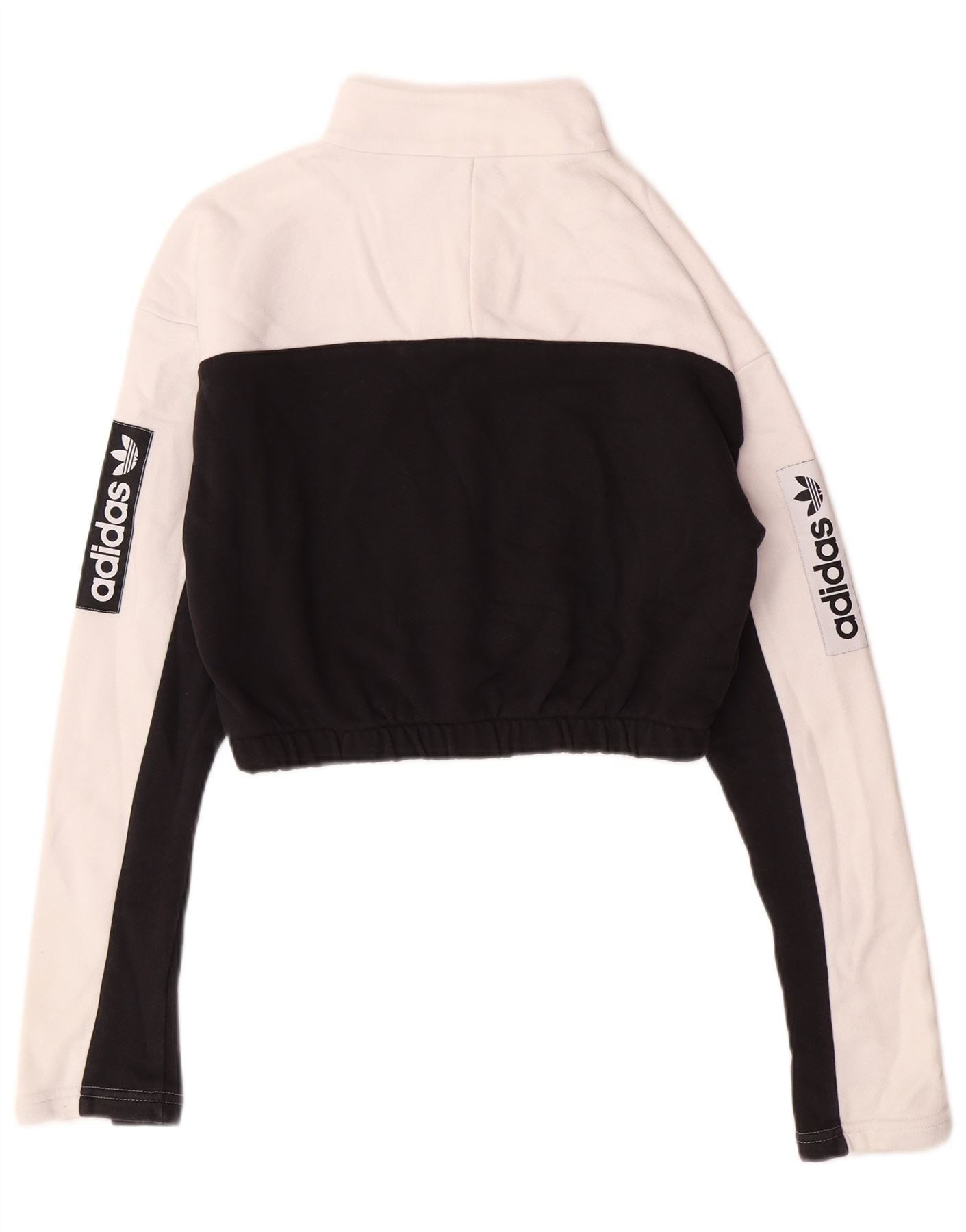 ADIDAS Womens Crop Graphic Sweatshirt Jumper UK 8 Small White Colourblock