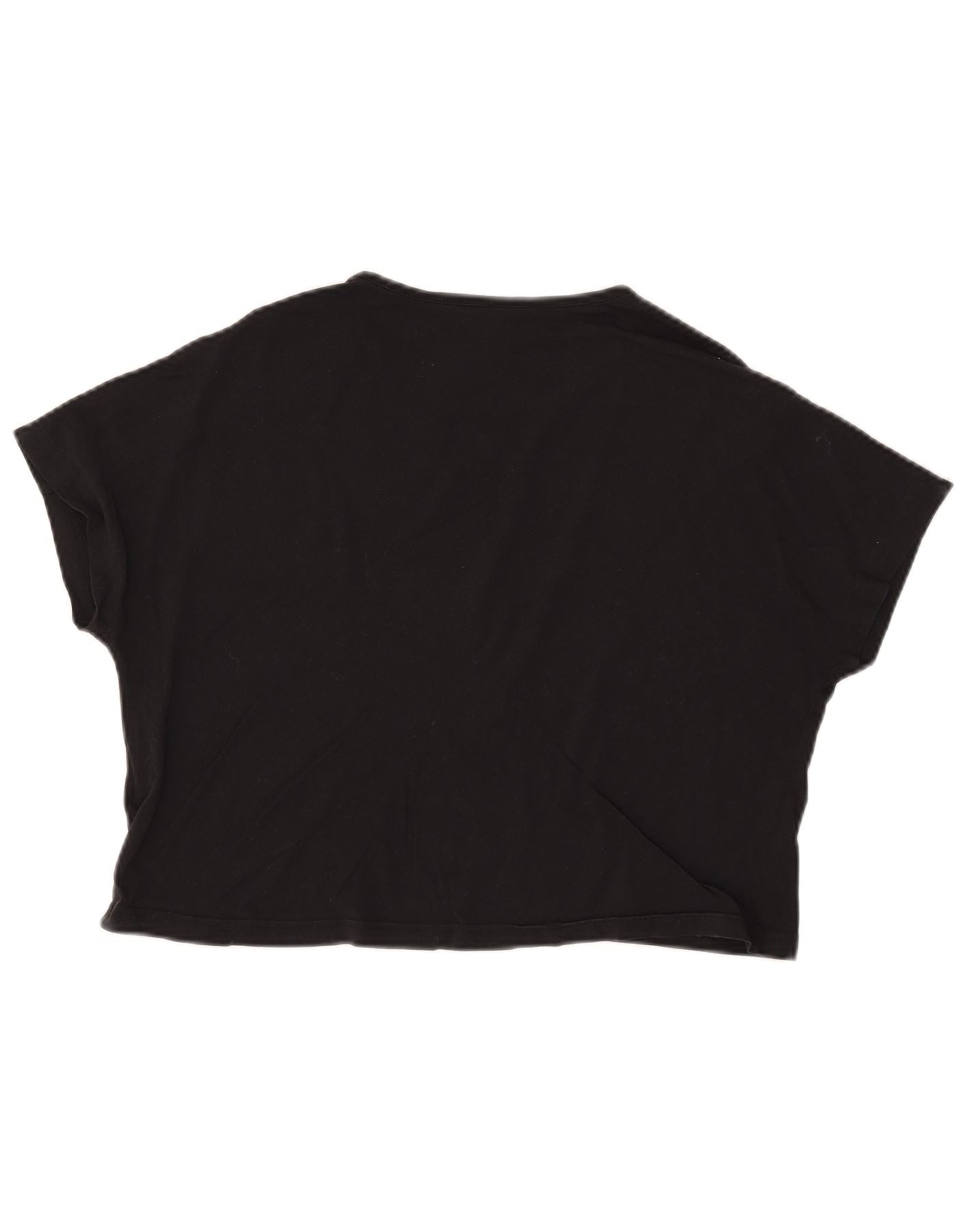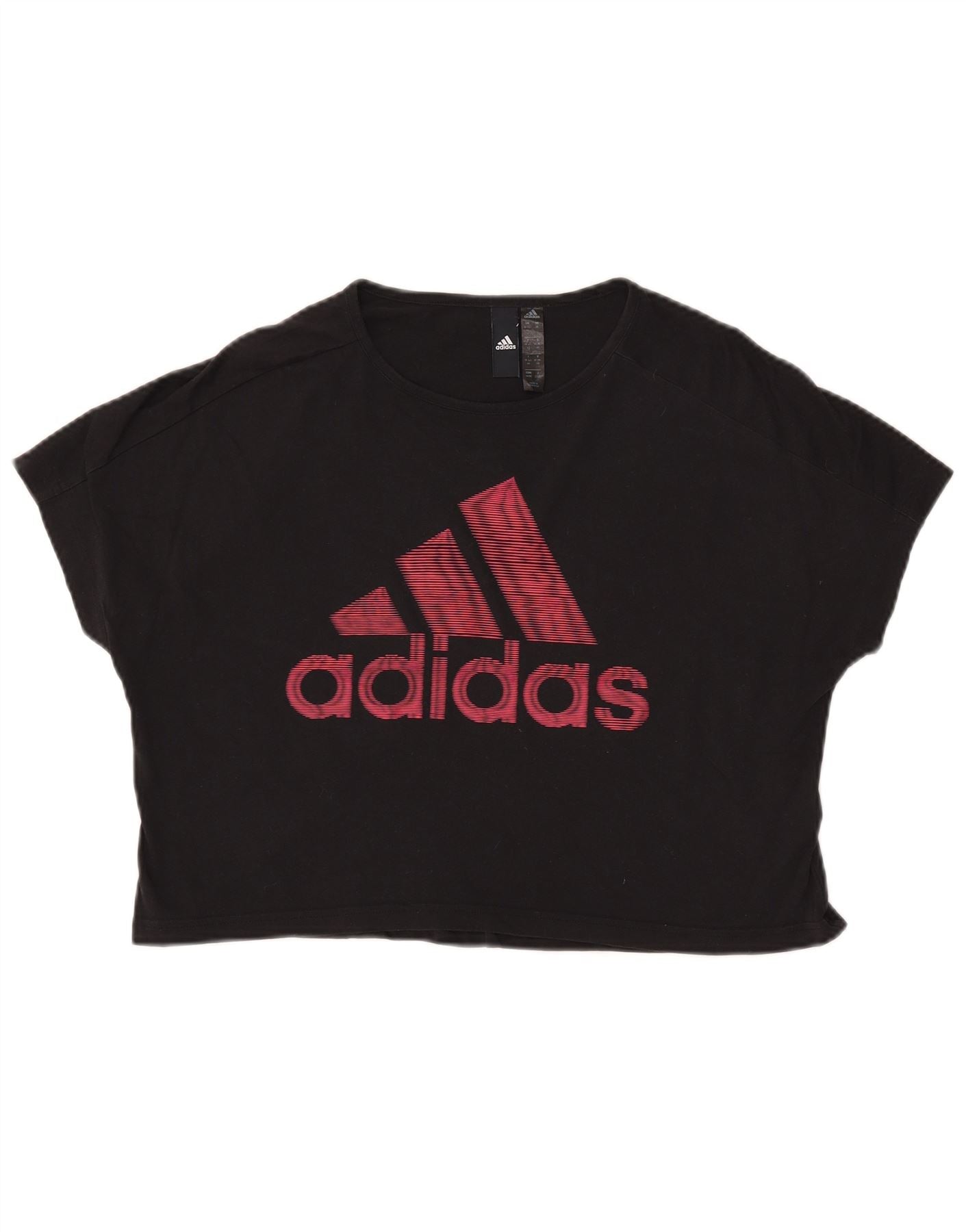ADIDAS Dame Crop Grafisk T-Shirt Top UK 12/14 Medium Sort Bomuld