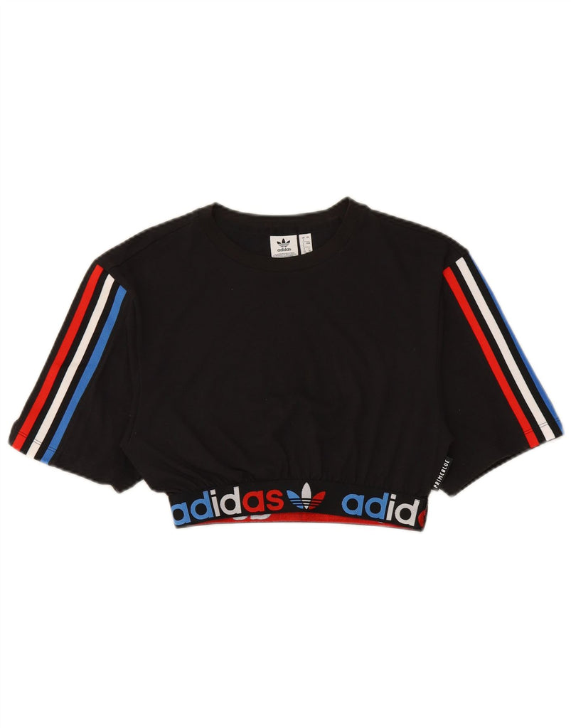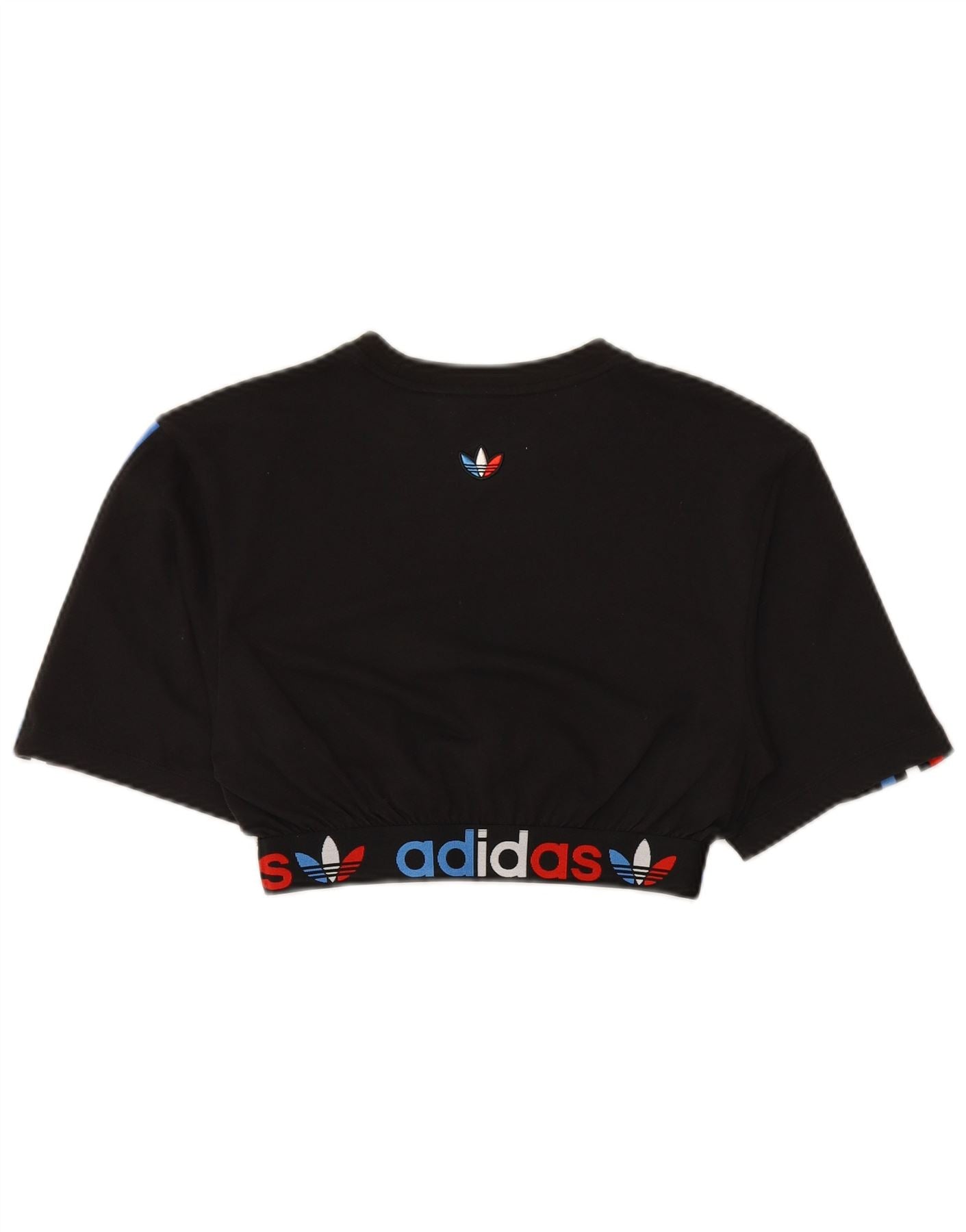 ADIDAS Womens Crop Graphic T-Shirt Top UK 8 Small Black Polyester