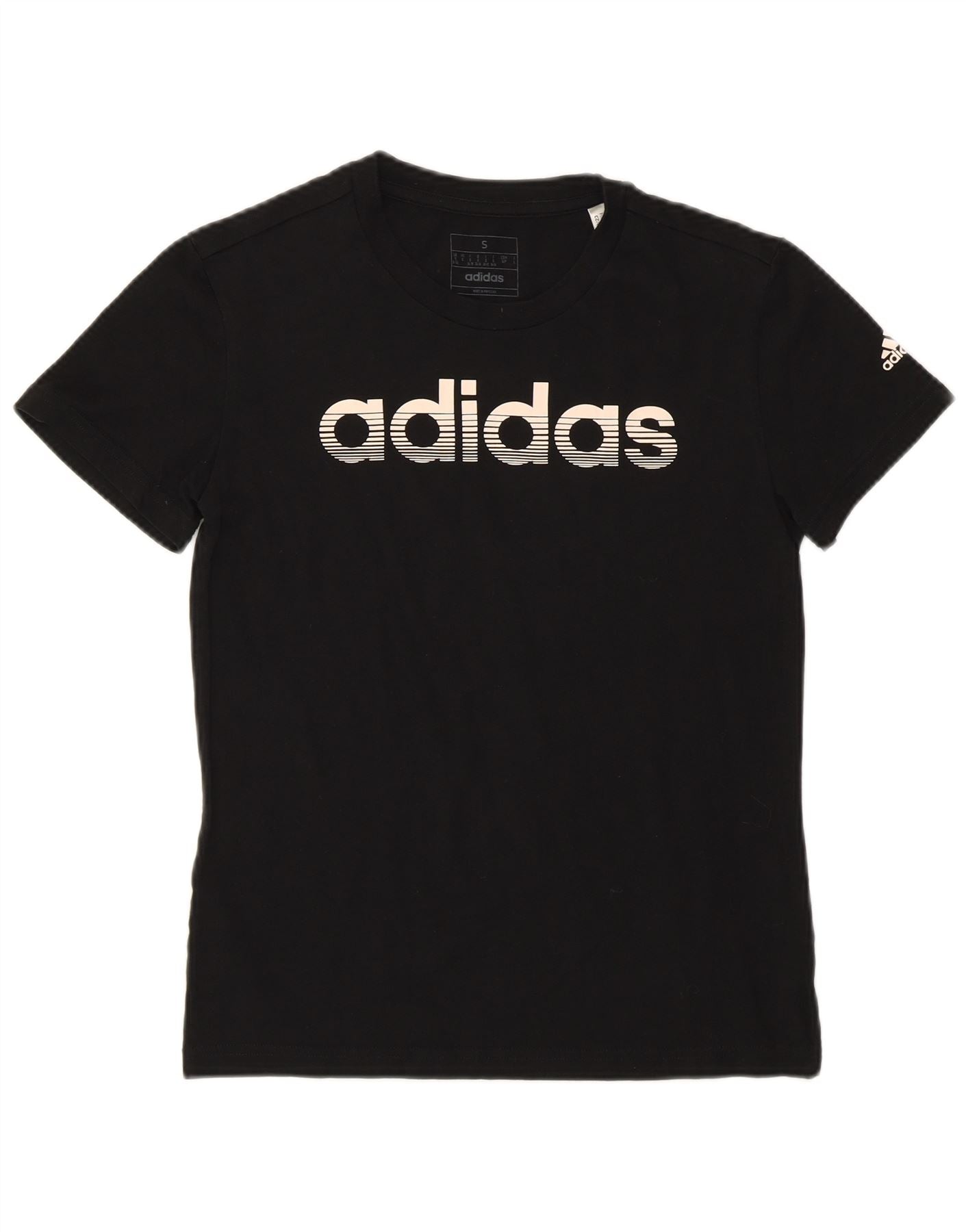 ADIDAS Grafisk T-shirt top til kvinder UK 8/10 Lille sort bomuld