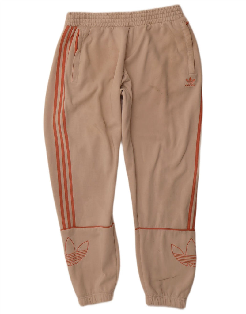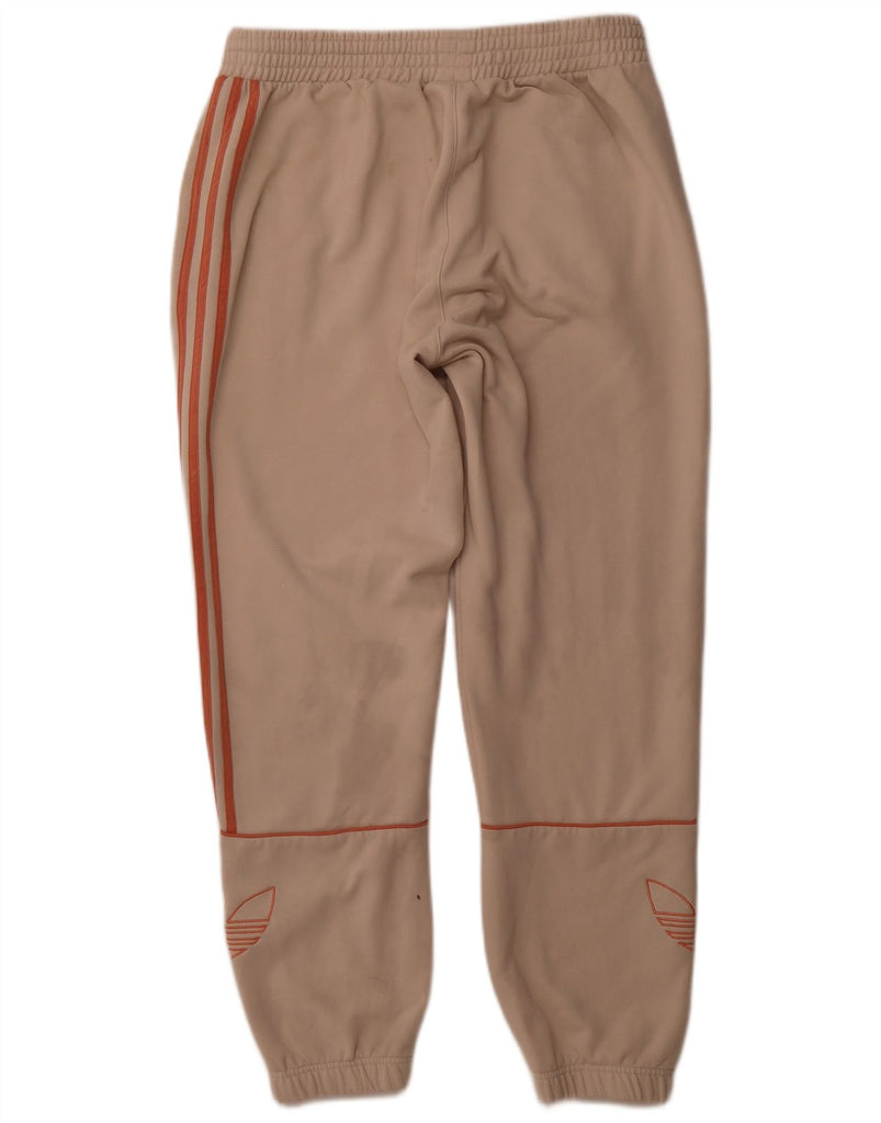 ADIDAS Womens Graphic Tracksuit Trousers Joggers UK 16 Larg Beige Cotton