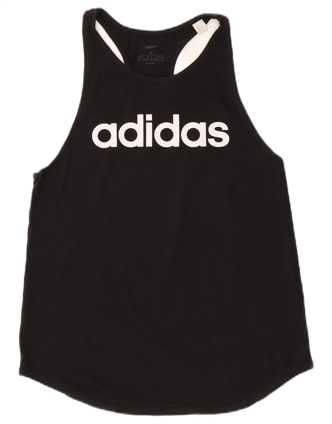 ADIDAS Kvinders Grafisk Vest Top UK 12/14 Medium Sort Bomuld