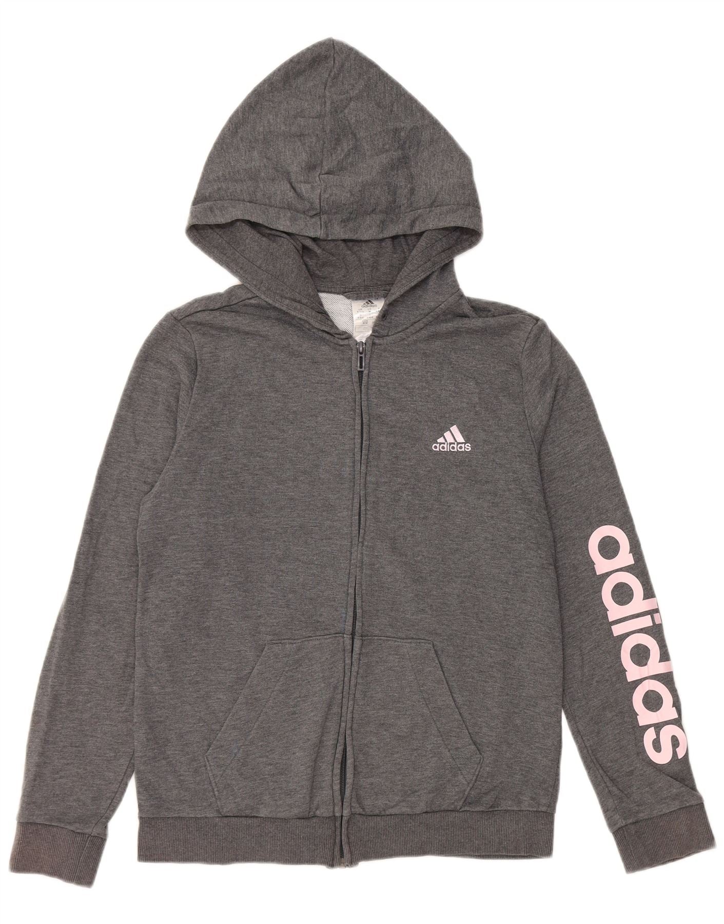 ADIDAS grafisk hættetrøje med lynlås til kvinder UK 12/14 mellemgrå bomuld