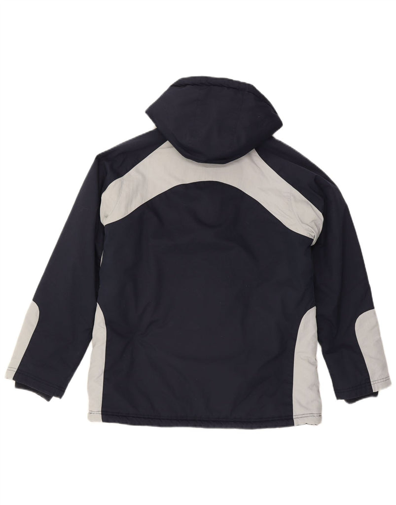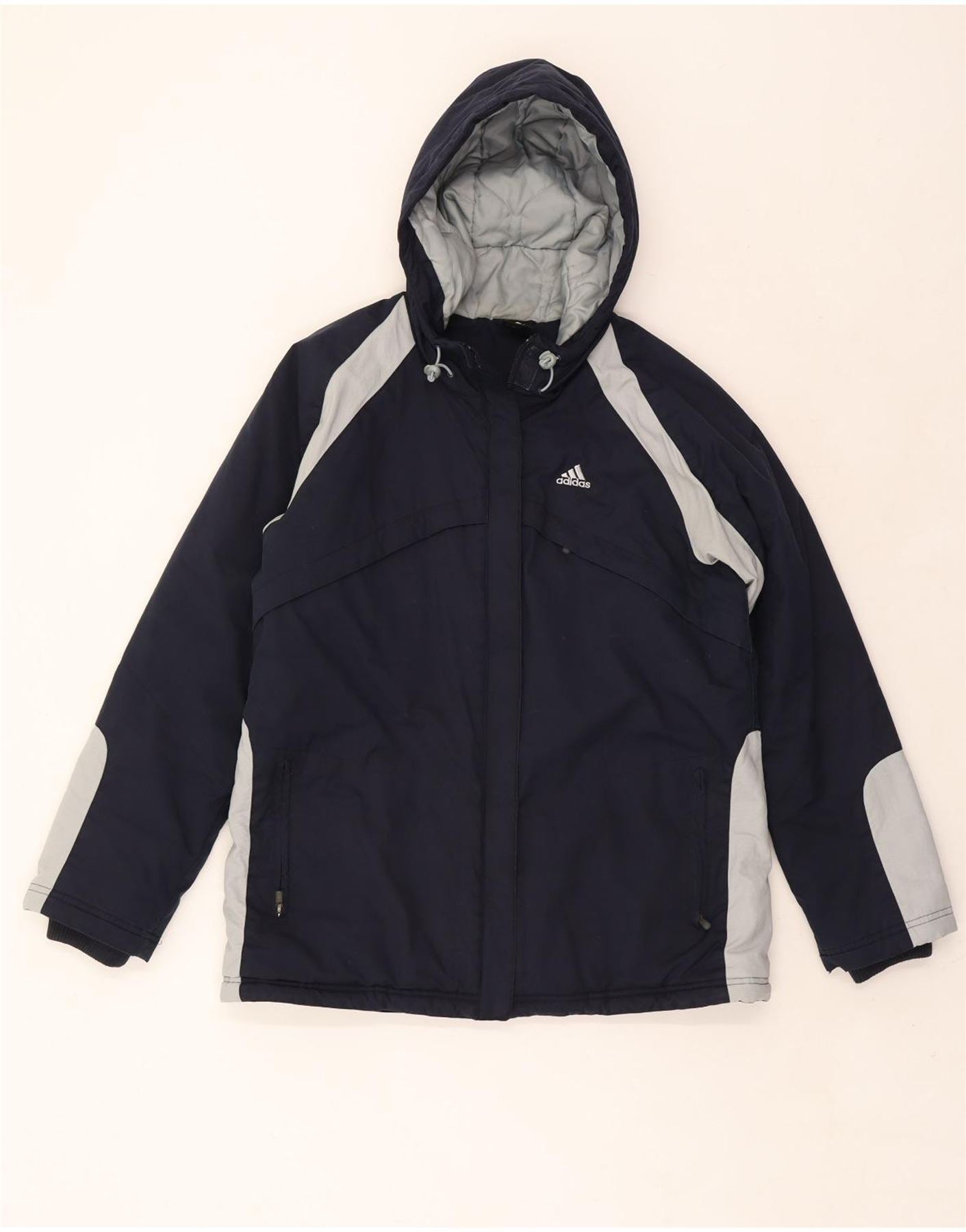 ADIDAS Womens Hooded Windbreaker Jacket UK 12 Medium Navy Blue Colourblock