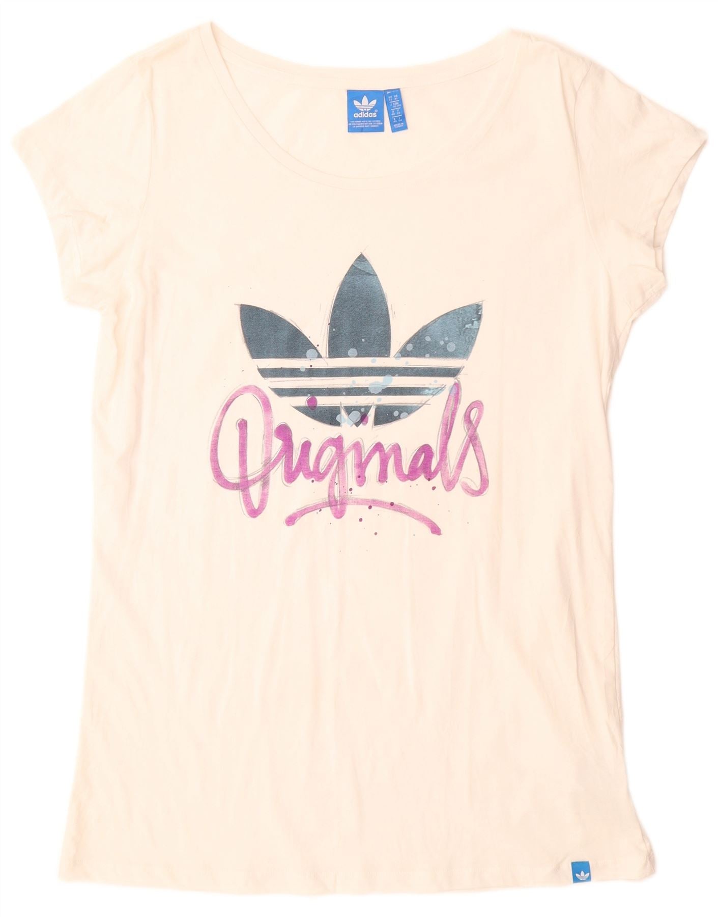 ADIDAS Dame Longline grafisk T-shirt Top UK 22 XL Hvid Bomuld