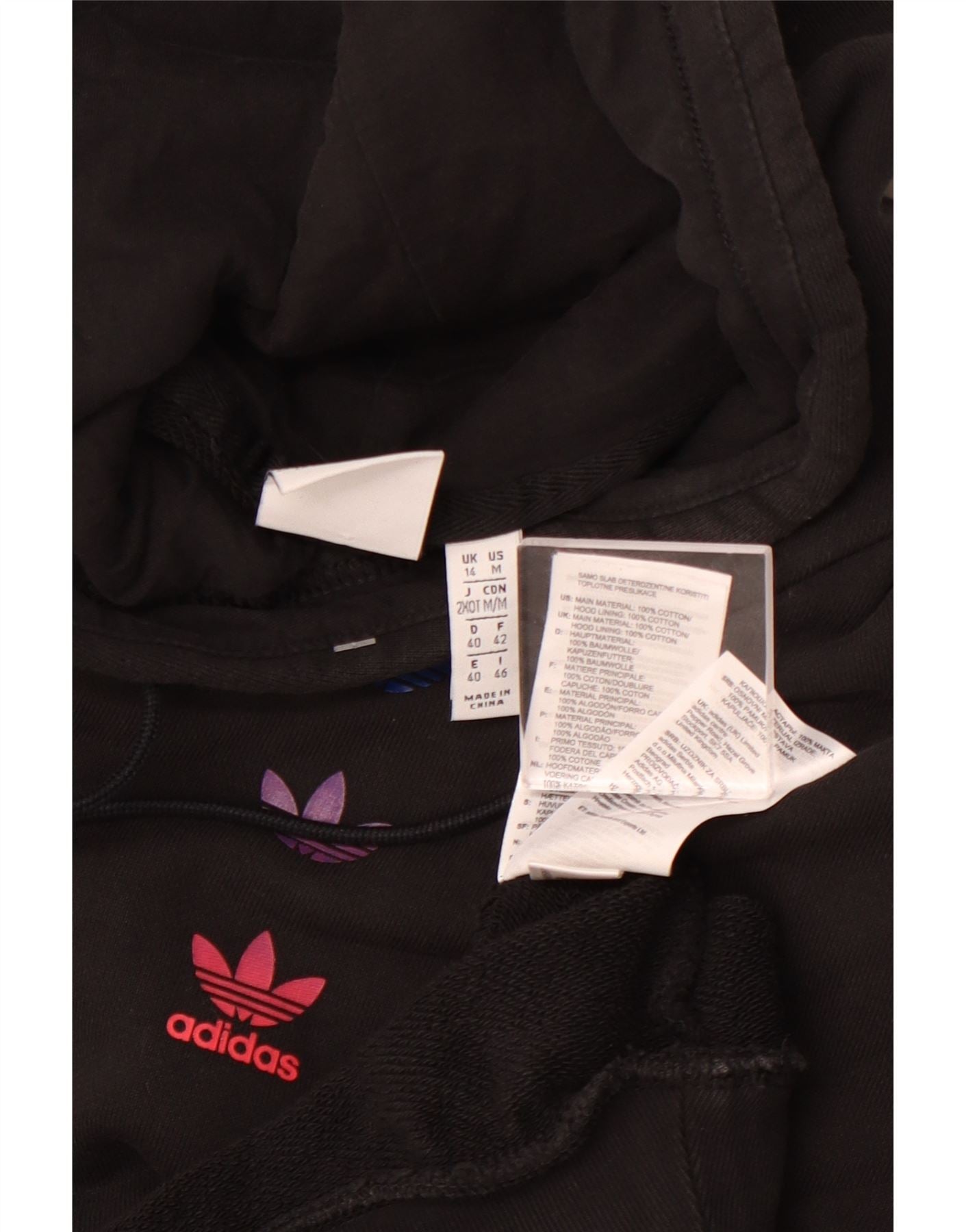 ADIDAS Dame Loose Fit Grafisk Hoodie Jumper UK 14 Stor sort bomuld