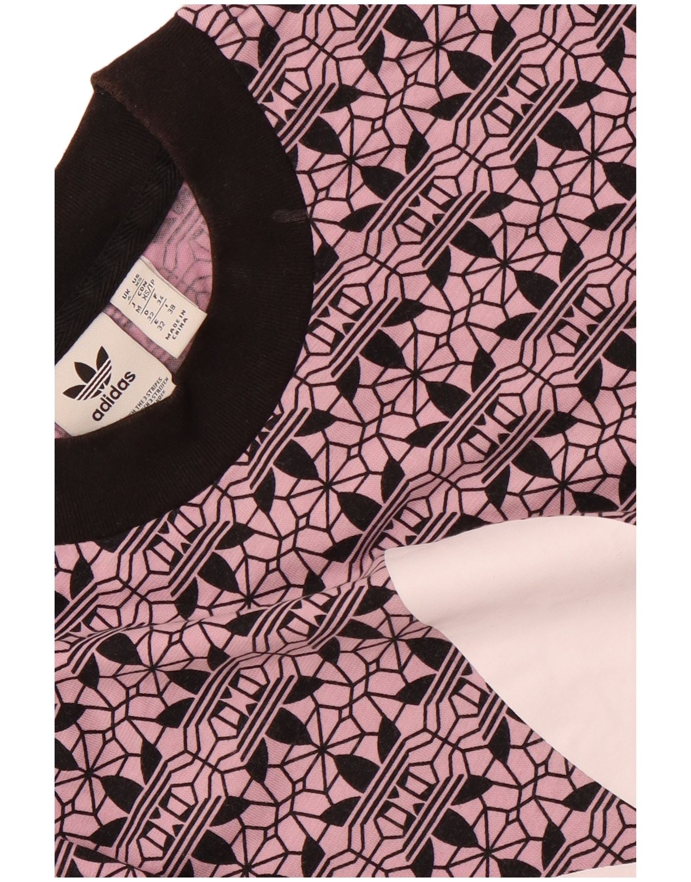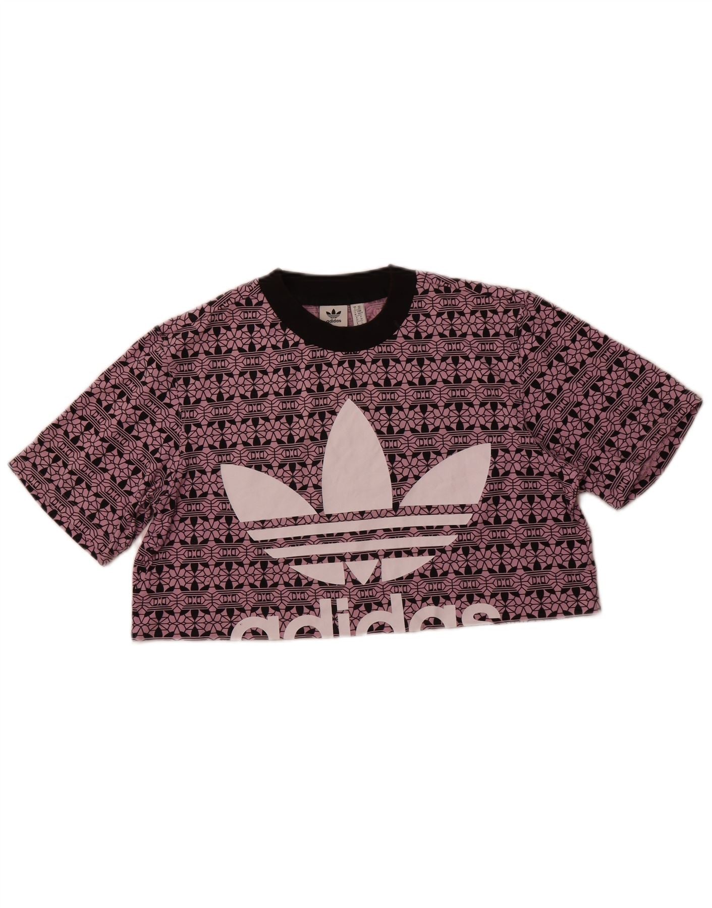 ADIDAS Kvinders Oversized Crop Grafisk T-Shirt Top UK 6 XS Lilla Bomuld
