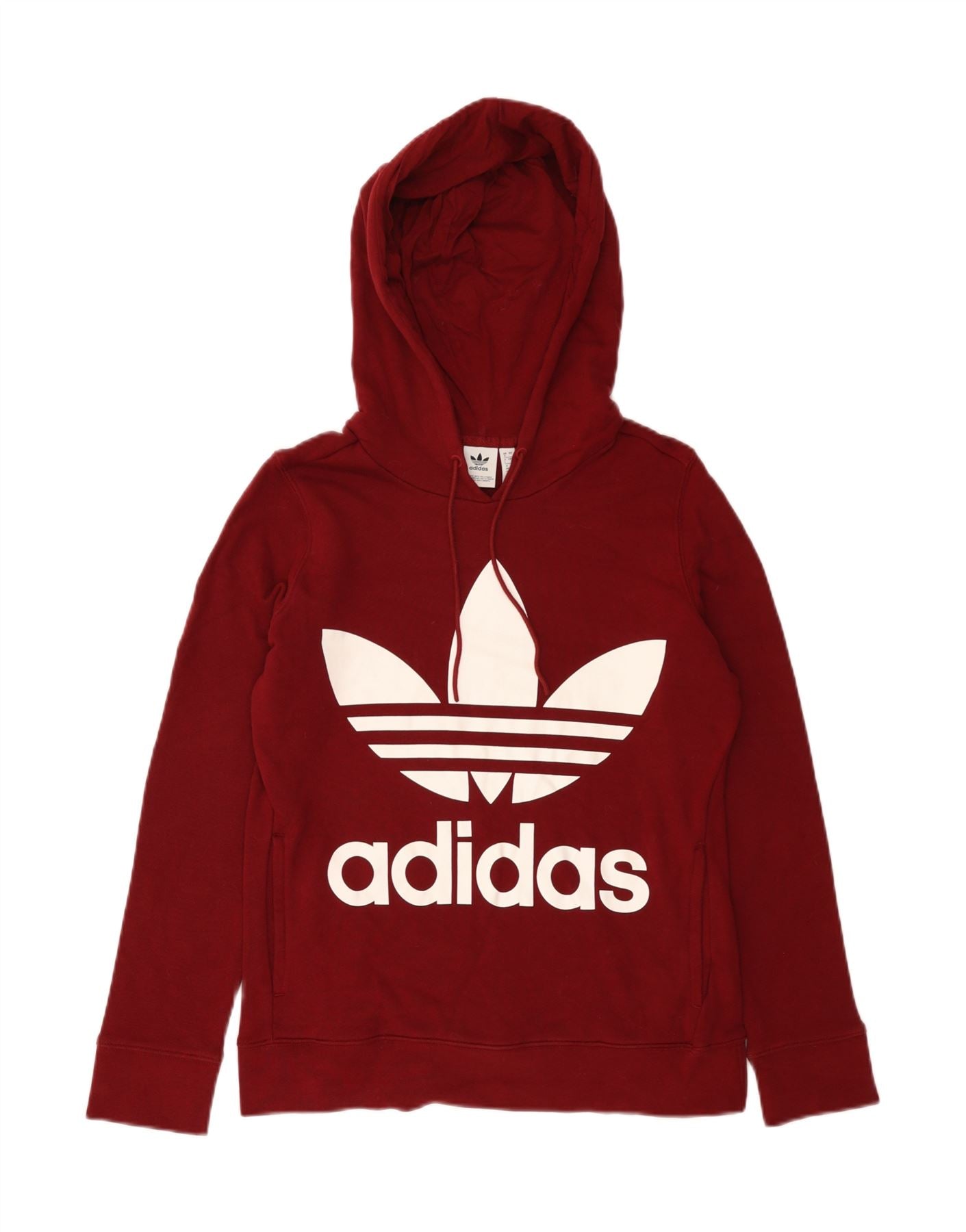 ADIDAS Womens Oversized Graphic Hoodie Jumper UK 8 Small Burgundy Cotton