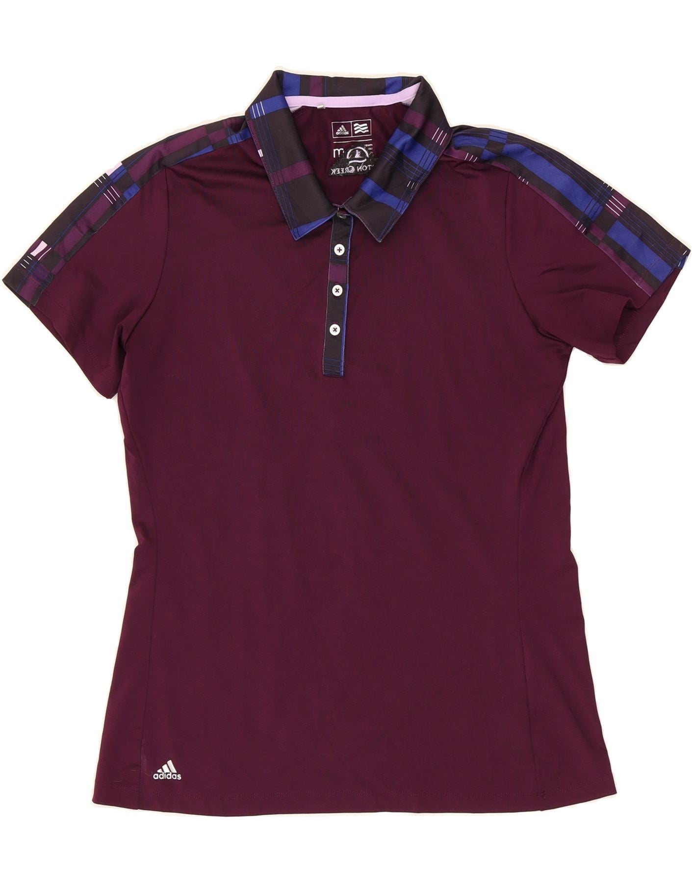 ADIDAS Womens Polo Shirt UK 14 Medium Purple Colourblock Polyester