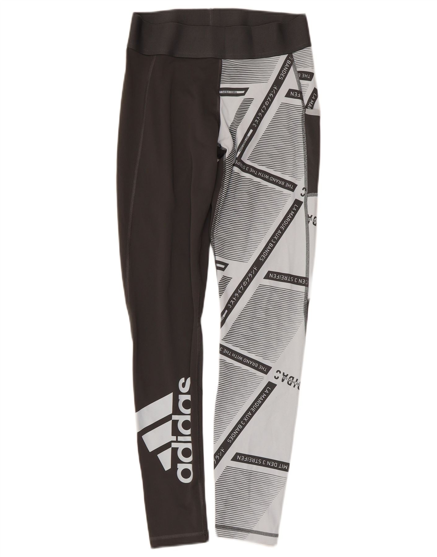 ADIDAS Womens Three Stripes Leggings UK 8/10 Small Black Geometric