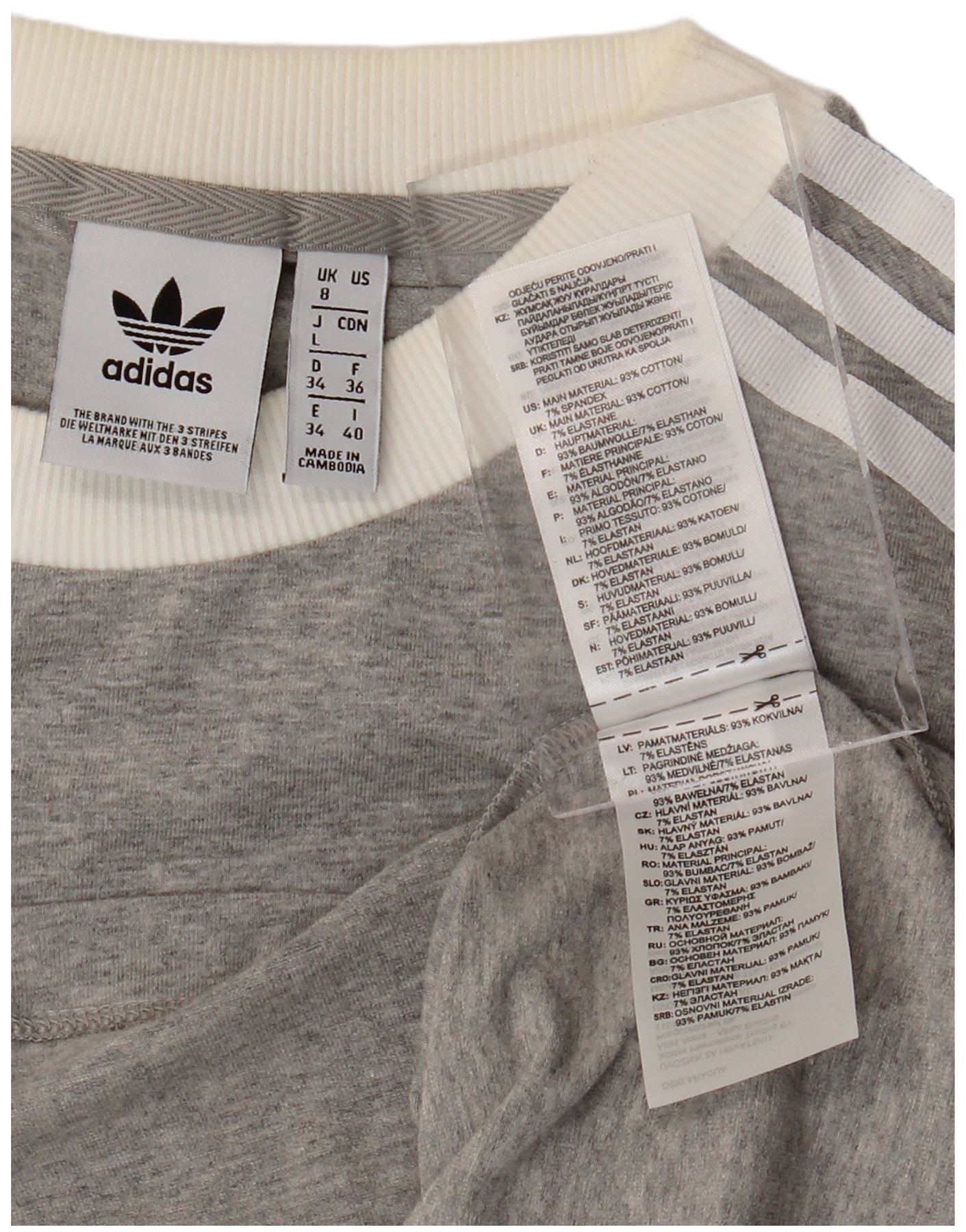 ADIDAS Dame Top Langærmet UK 8 Small Grey Flecked Bomuld