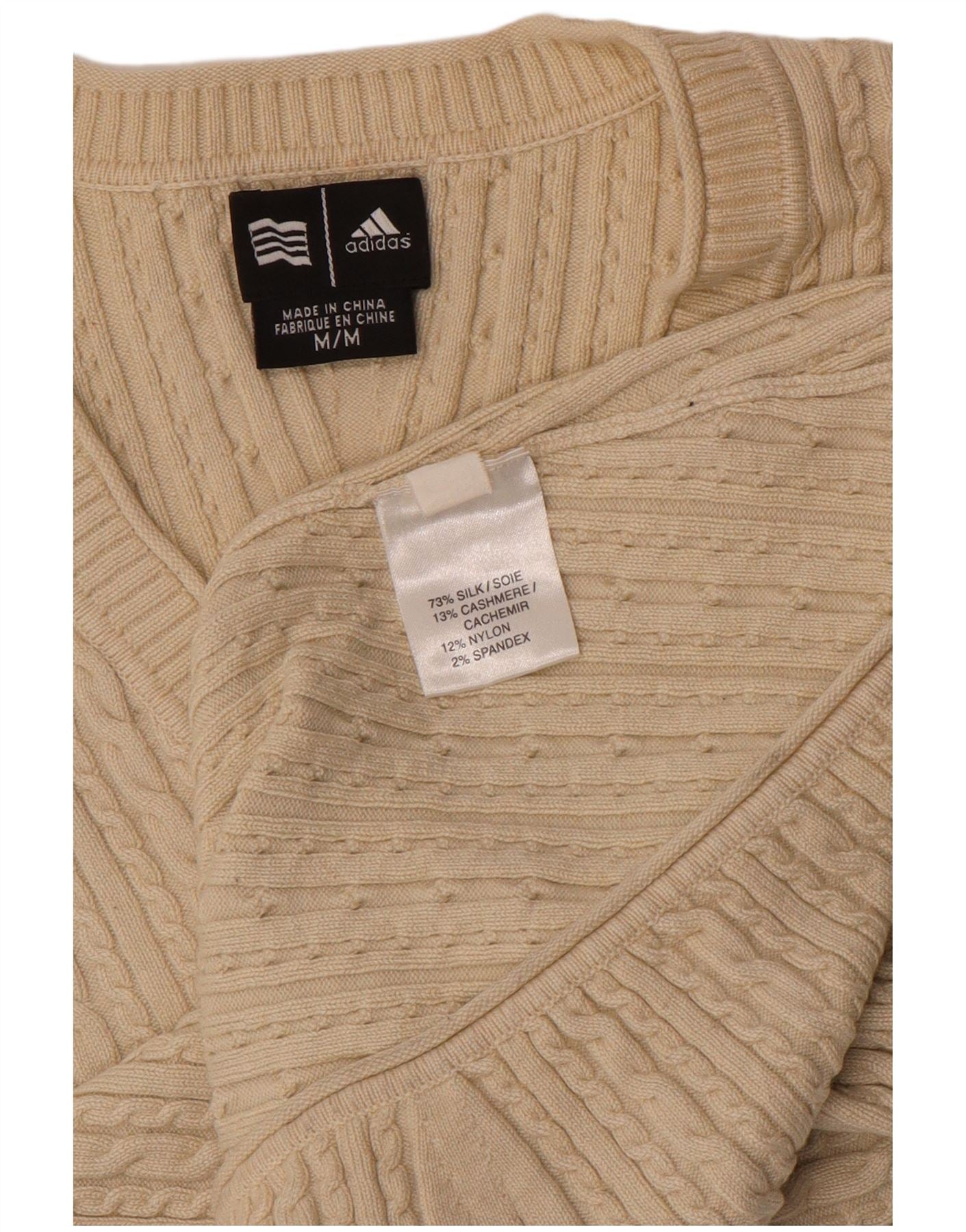 ADIDAS Dame V-hals sweater UK 12 Medium Beige Silke