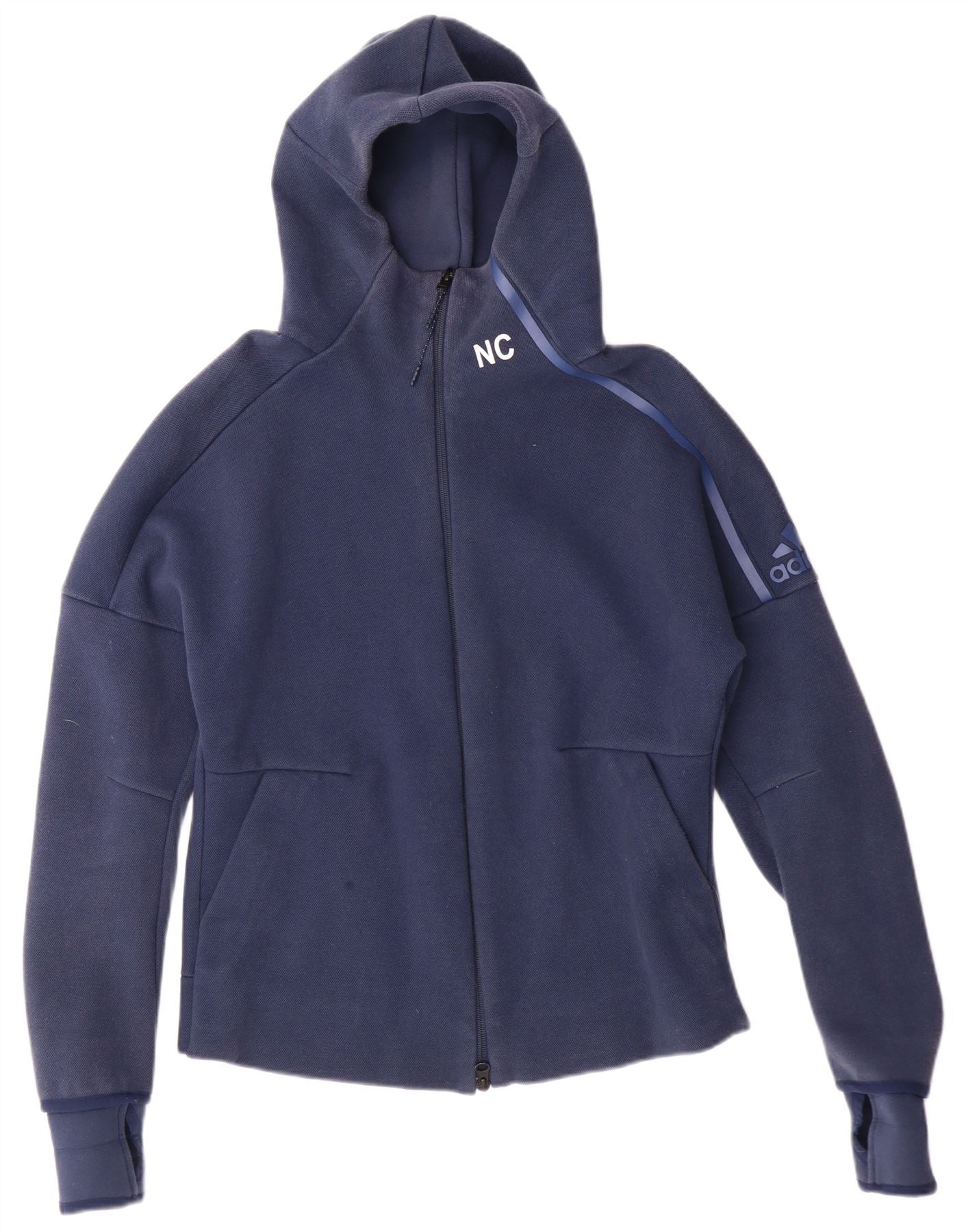 ADIDAS hættetrøje med lynlås til kvinder UK 12/14 Medium marineblå bomuld