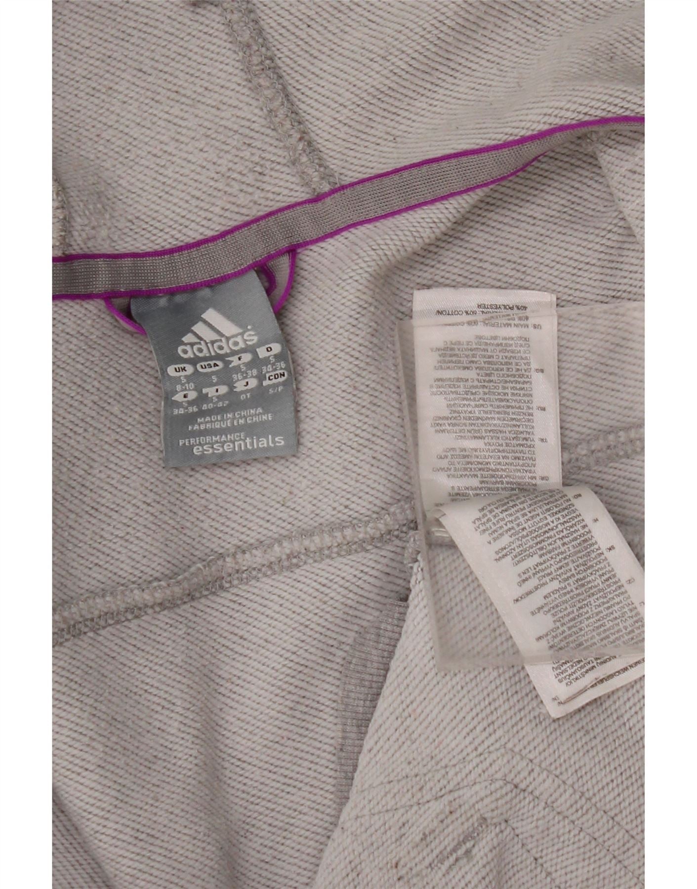 ADIDAS hættetrøje med lynlås til kvinder UK 8/10 lille grå bomuld