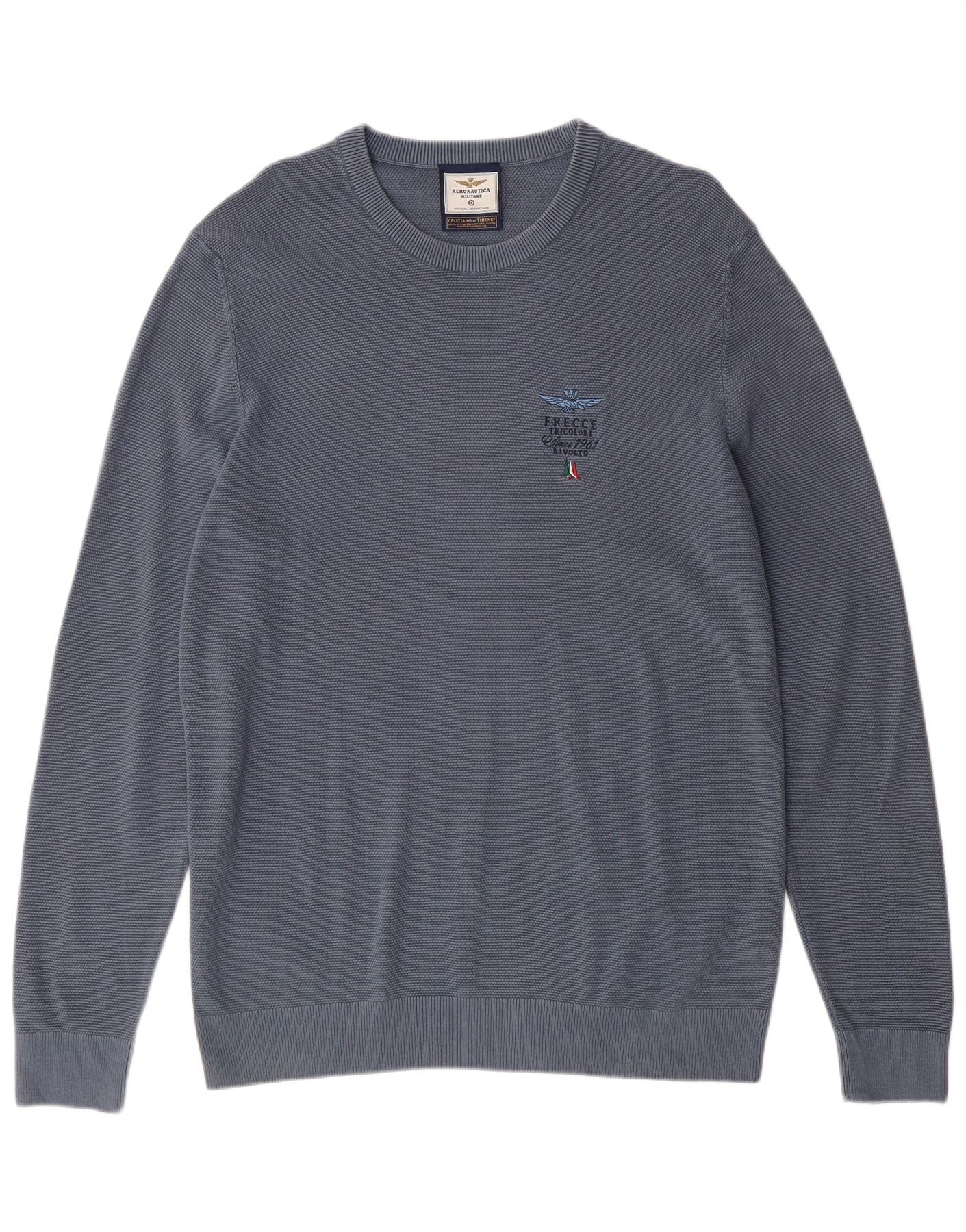 AERONAUTICA MILITARE Herre sweater med rund hals XL blå bomuld