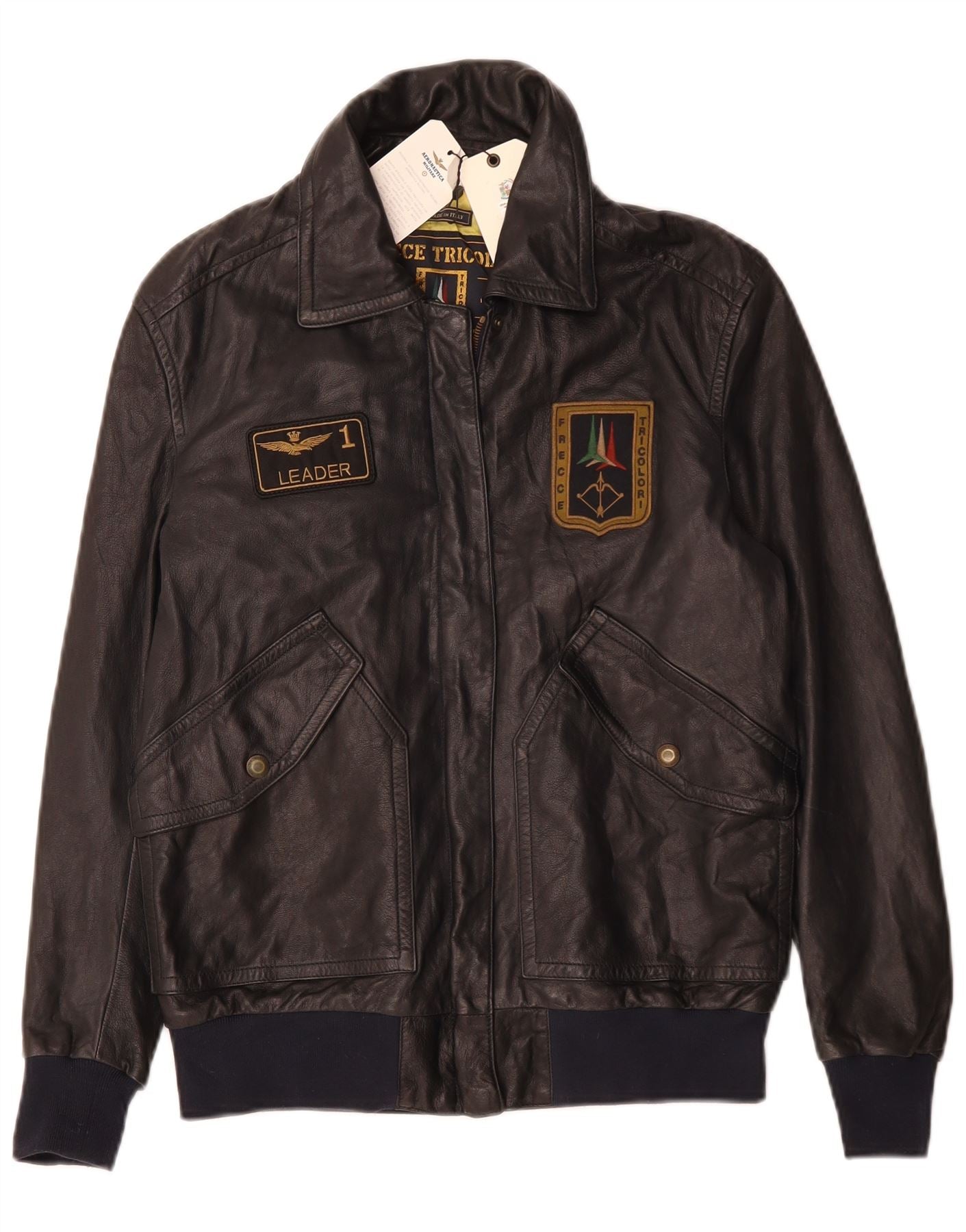 AERONAUTICA MILITARE Grafisk jakke til kvinder IT 42 Medium sort læder