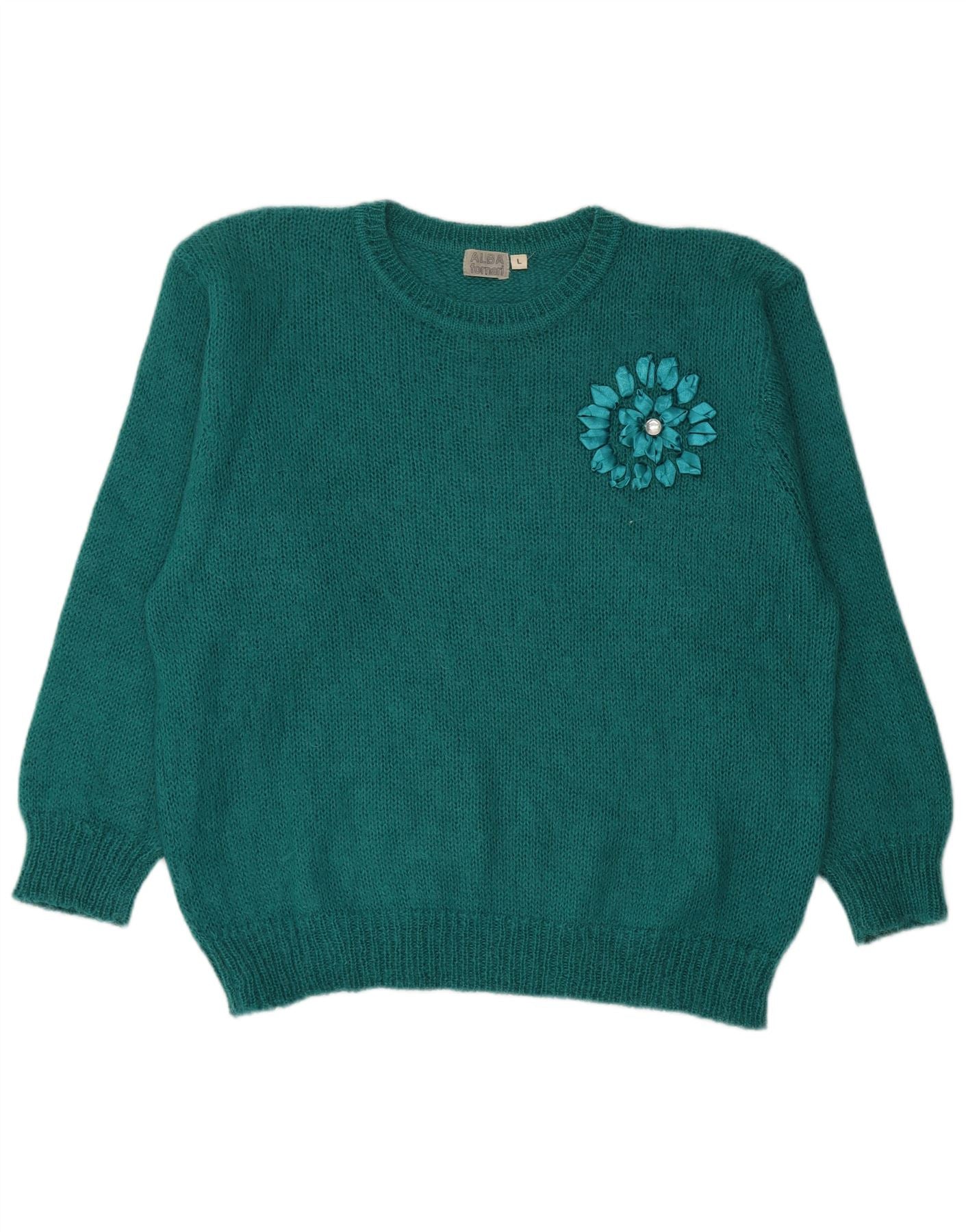 ALBA FORNARI Dame sweater med rund hals DK 16 Stor grøn blomster