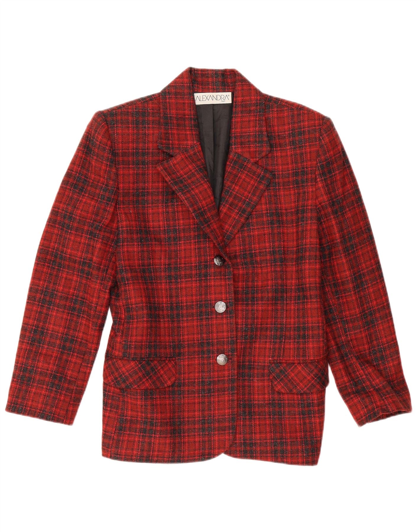 ALEXANDRA Dame 3-knaps blazerjakke IT 46 Stor rød ternet uld