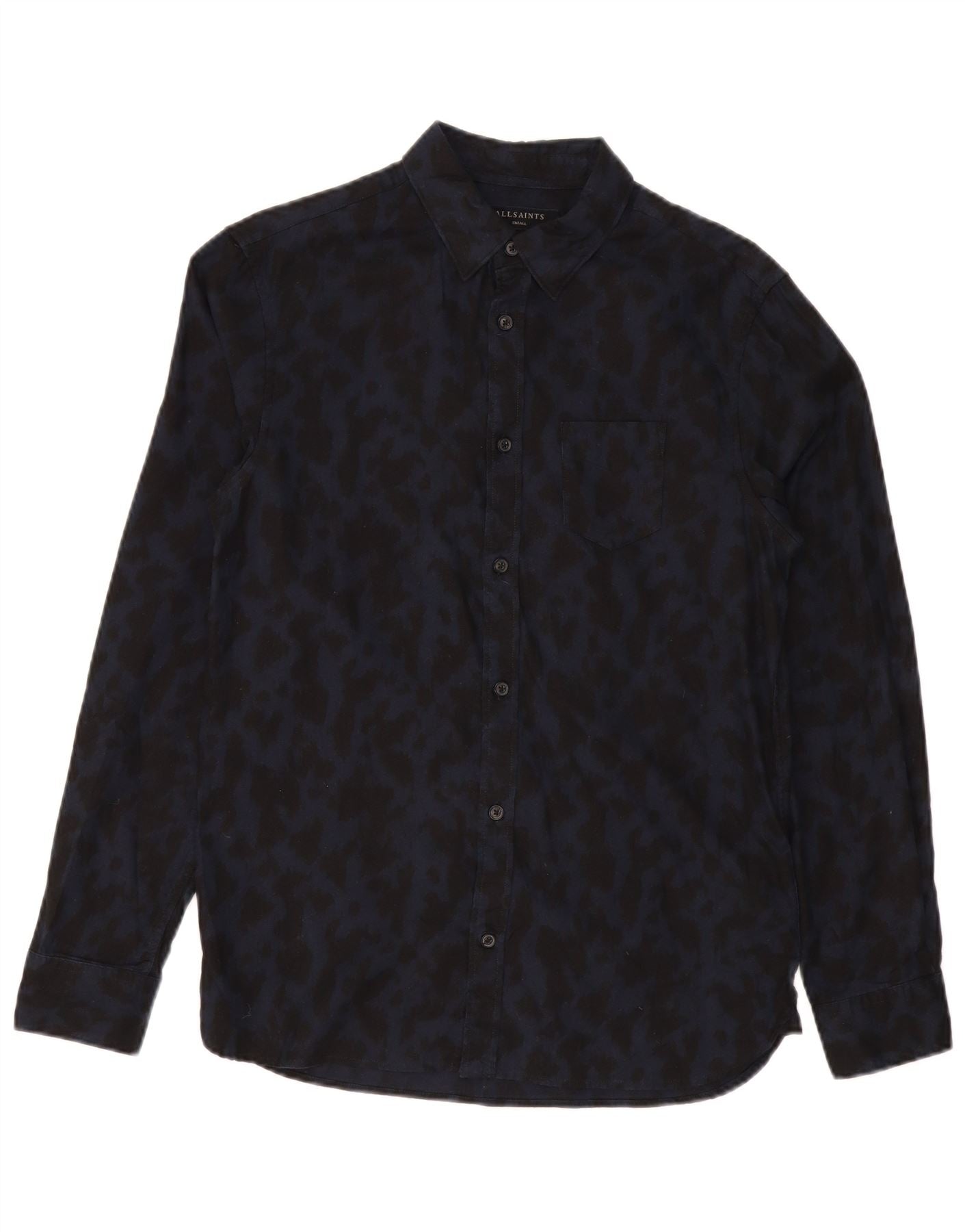 ALL SAINTS Herreskjorte lille marineblå dyreprint bomuld