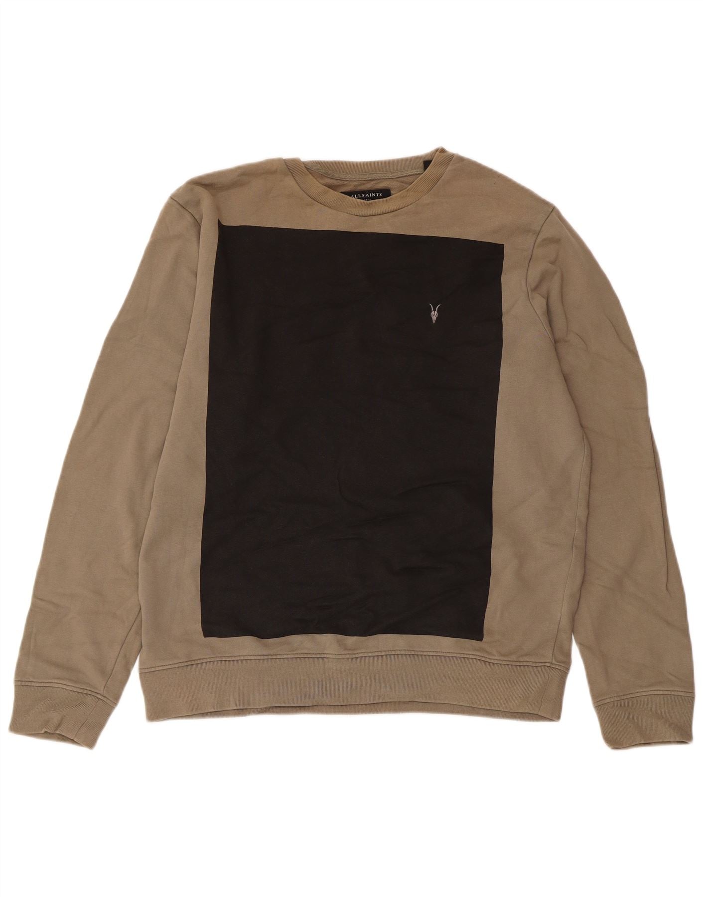 All Saints Herre Sweatshirt Jumper Stor Beige Colourblock Bomuld