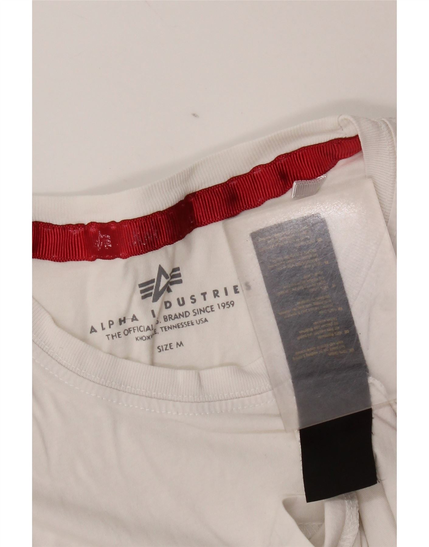 Alpha Industries Herre grafisk T-shirt Top Medium hvid stribet bomuld