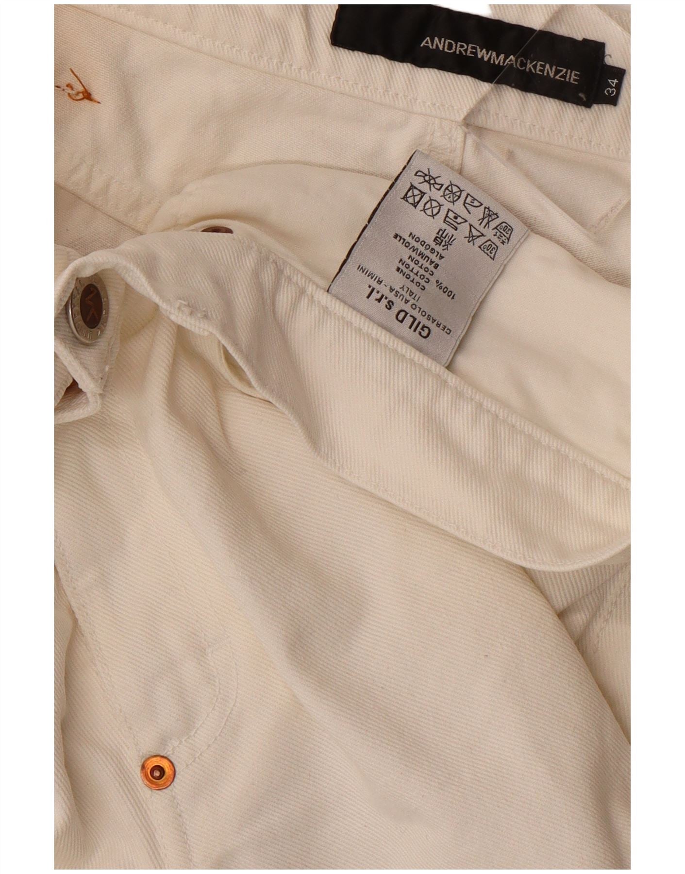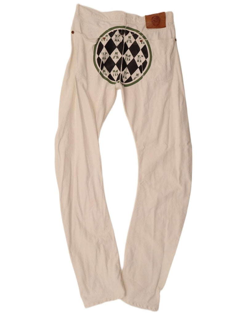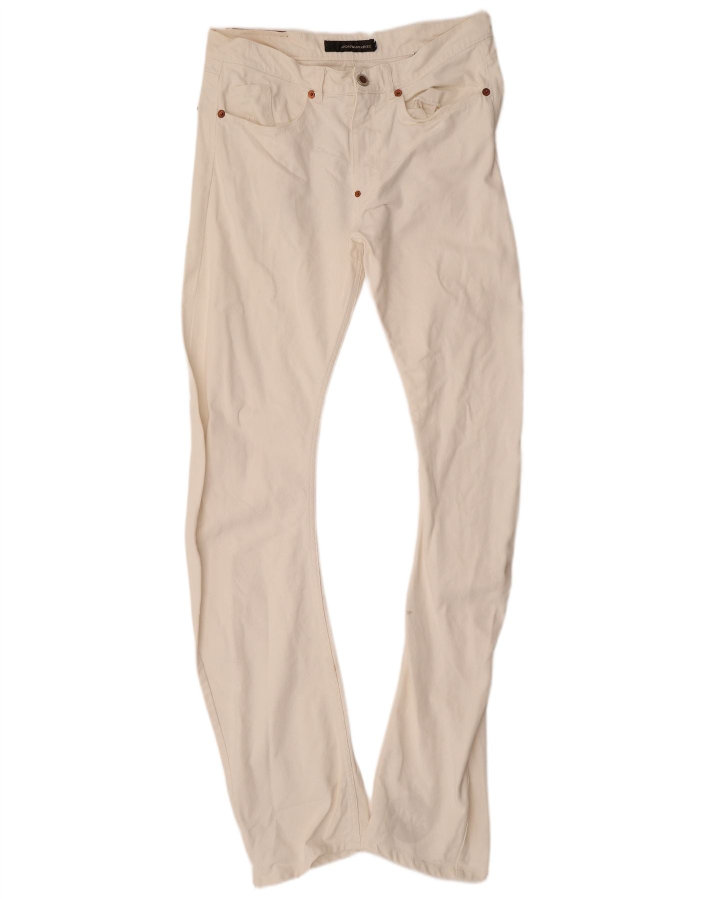 ANDREW MACKENZIE Mens Graphic Anti Fit Bootcut Jeans W34 L38 White Cotton