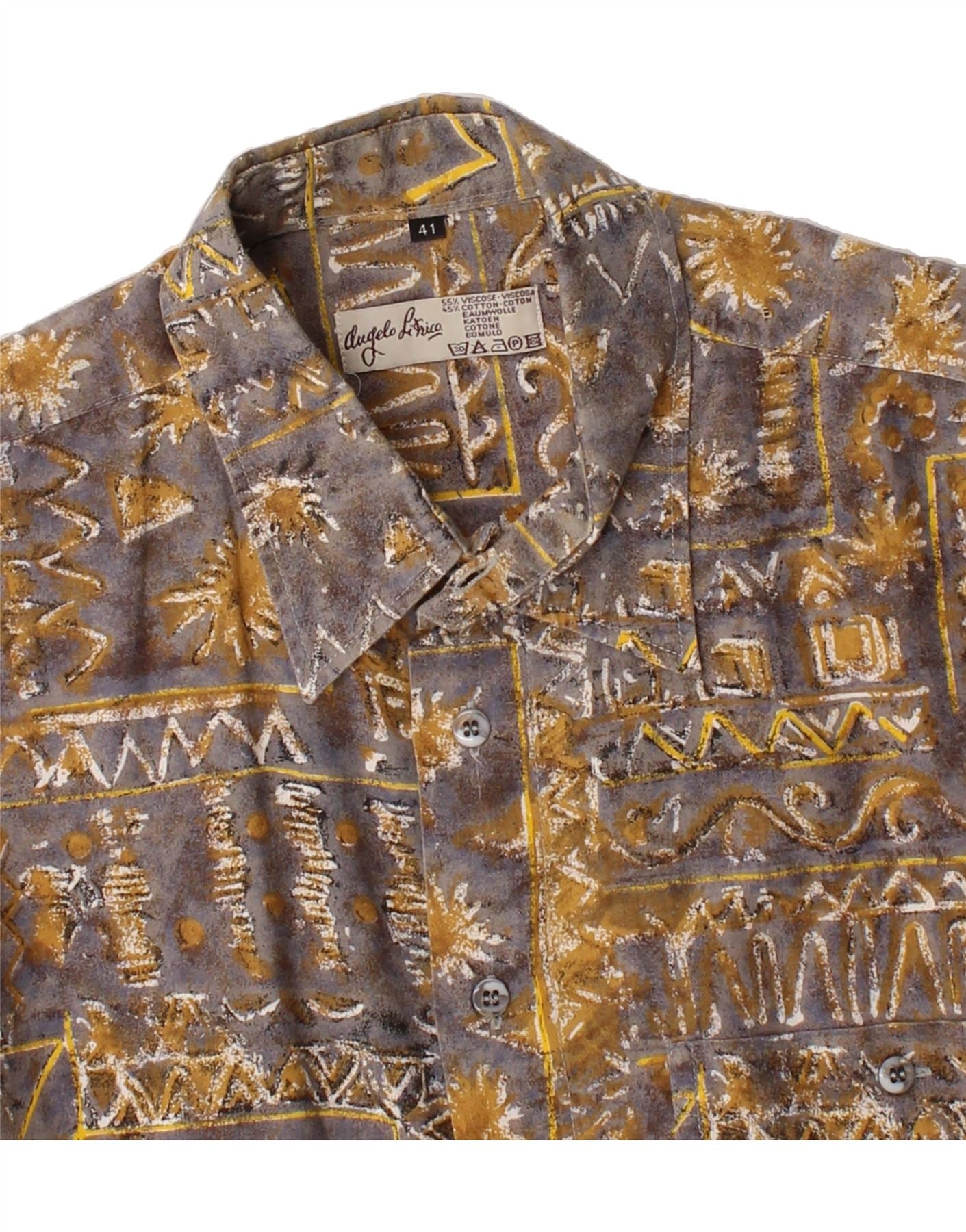 ANGELO LITRICO Mens Abstract Pattern Shirt Size 41 Large Grey Cotton