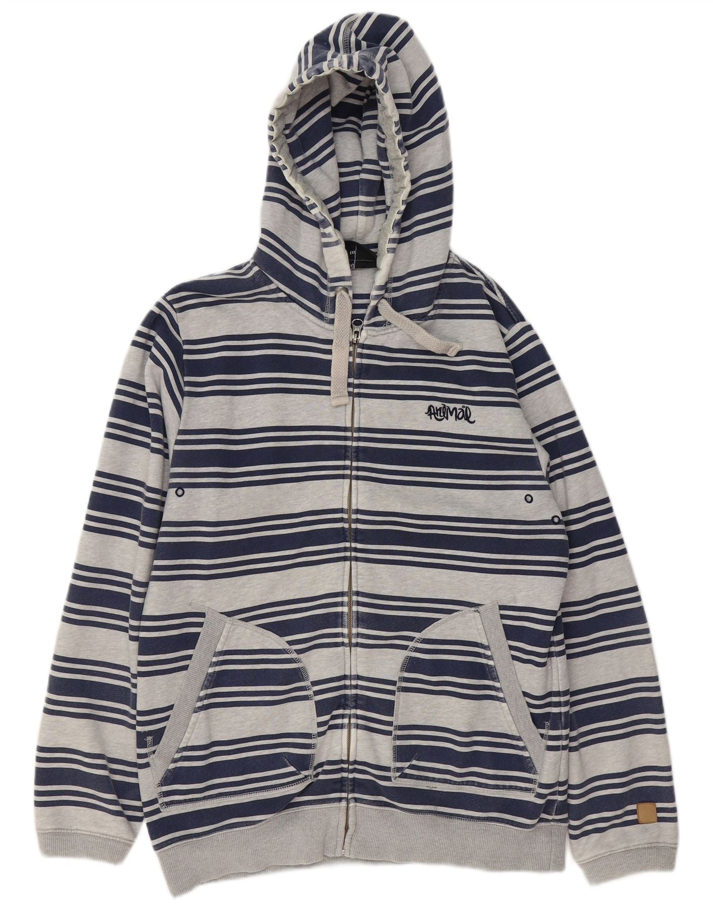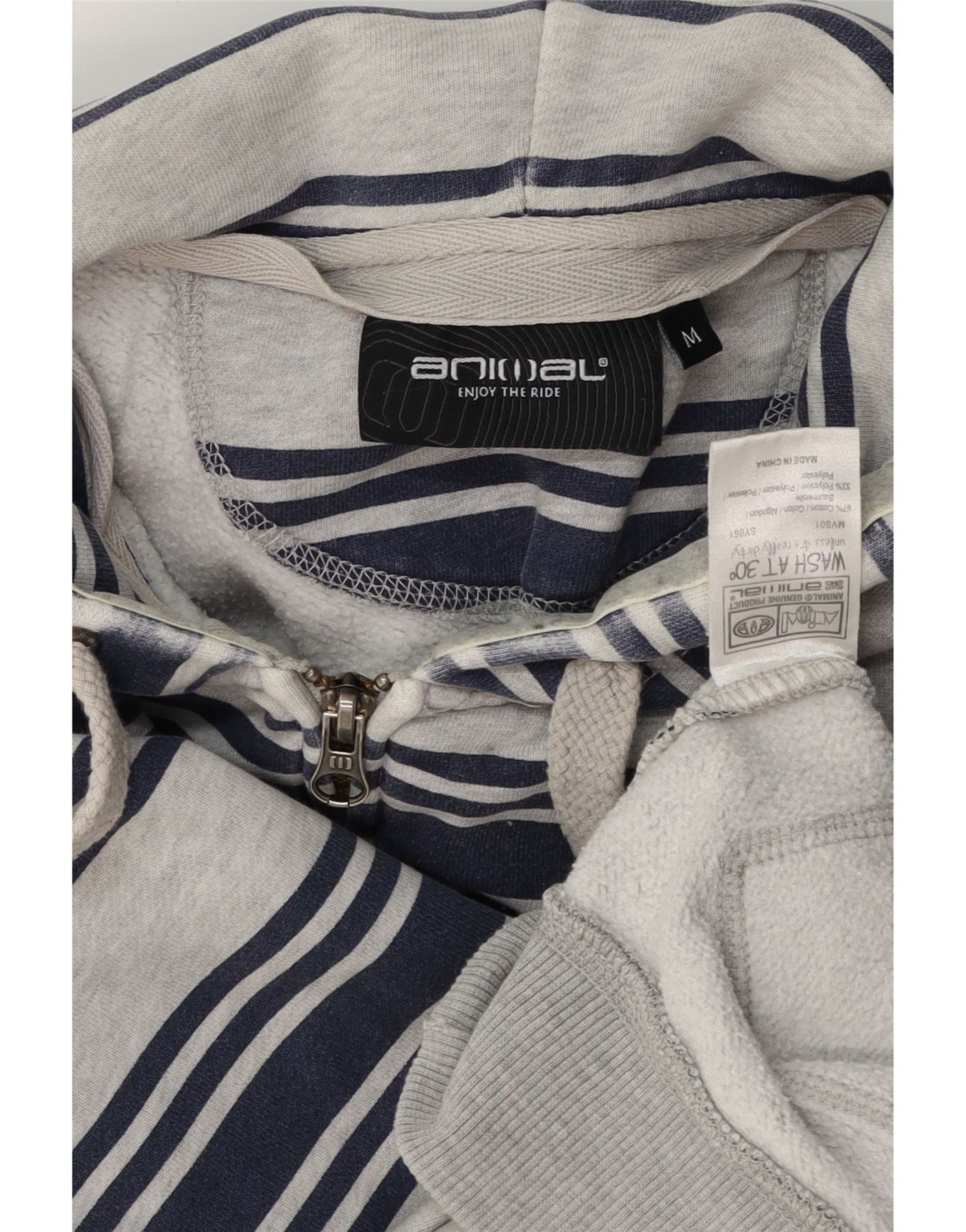 ANIMAL Mens Zip Hoodie Sweater Medium Grey Striped Cotton
