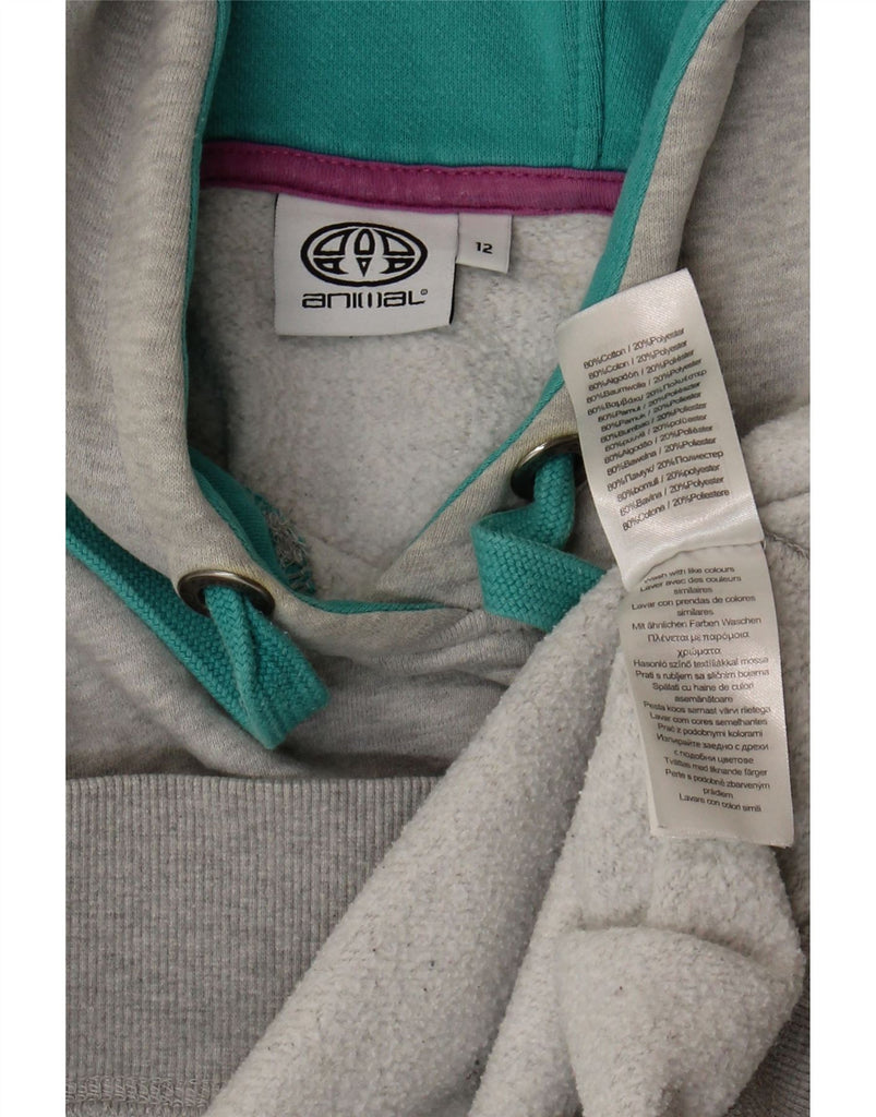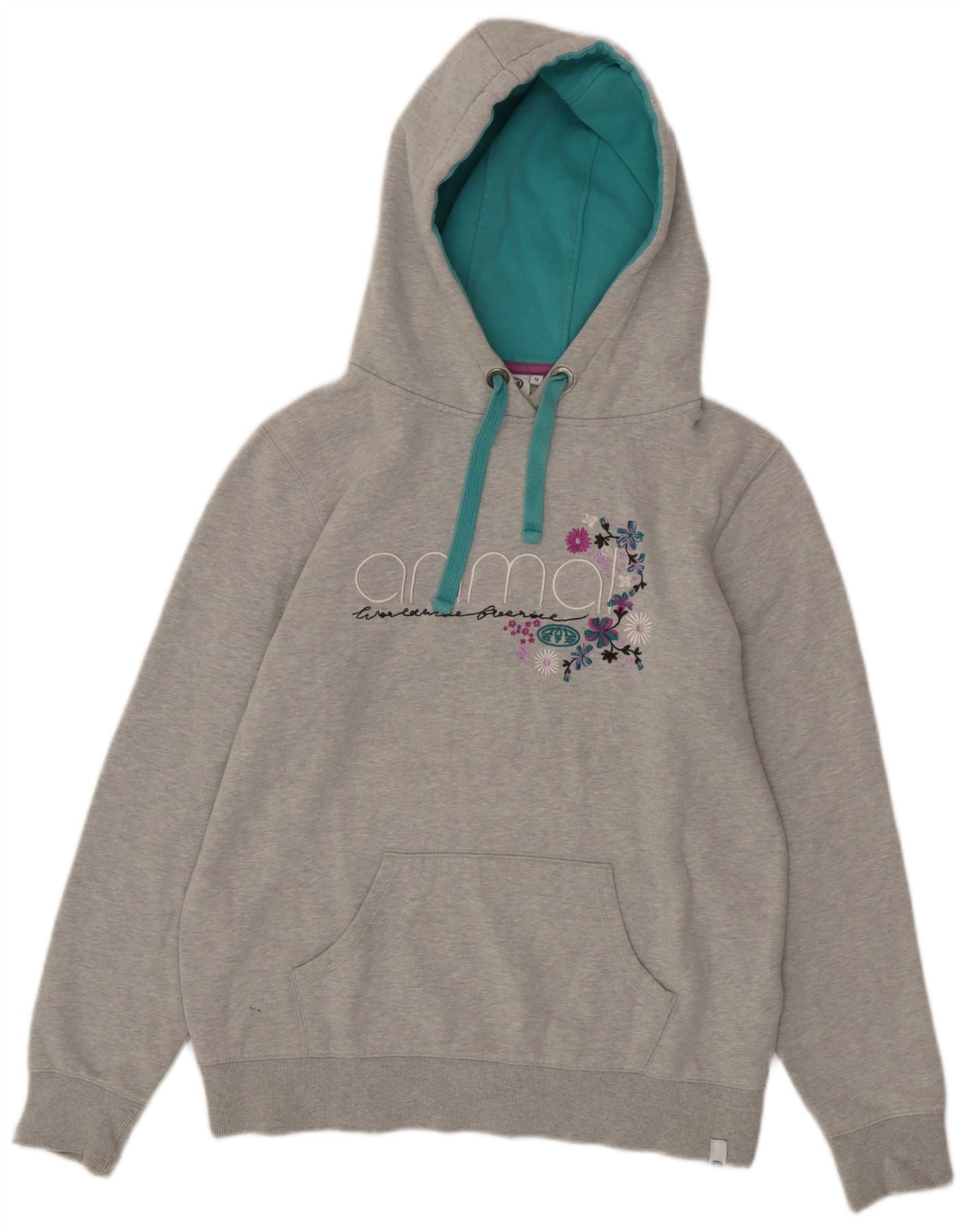 ANIMAL Womens Graphic Hoodie Jumper UK 12 Medium Grey Floral Cotton